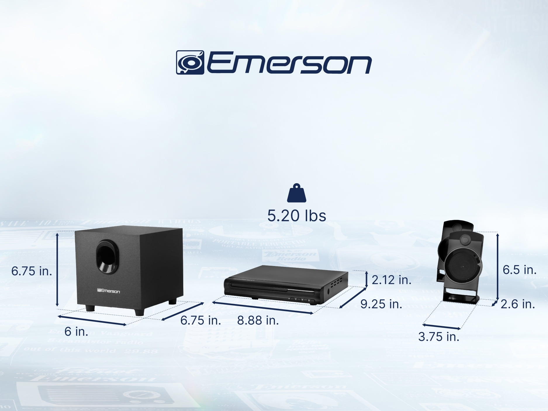 Check out the Emerson 2.1-Channel Home Theater DVD/Speaker System! The ED-8050 is home theater in a box with a DVD digital player and a 2.1-channel speaker system. Experience surround-sound movie effects at home with the 2 full-range speakers, a subwoofer, and the attractive and slim DVD player with flexible connection options. Those connection options include component, composite, S-video, coaxial digital audio, and 2.1-channel RCA audio outputs. Upgrade your home entertainment today!