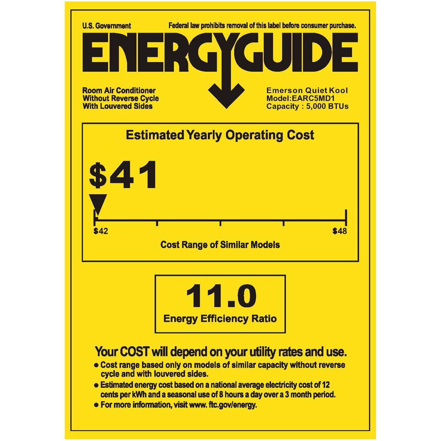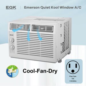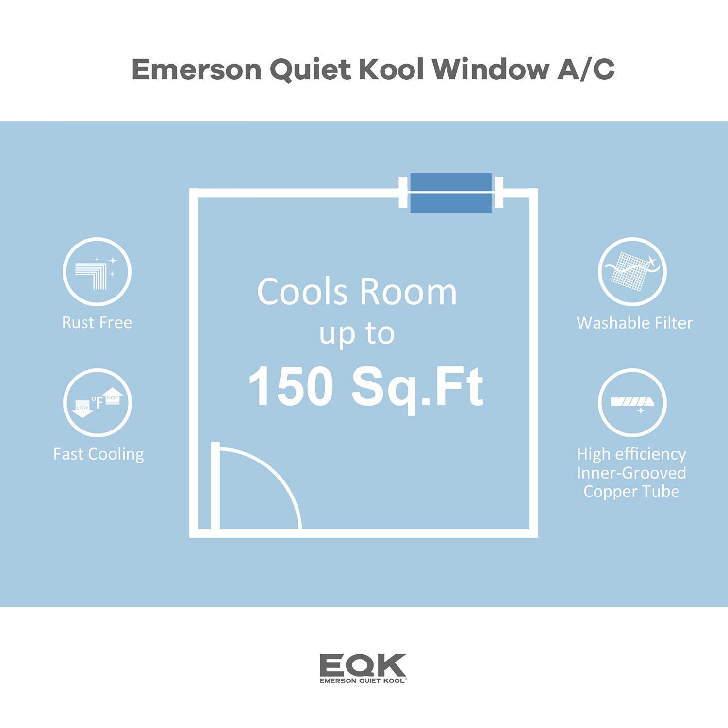 Emerson Quiet Kool 5,000 BTU 115-Volt 150 Sq. Gt. Window Air Conditioner, White, EARC5MD1