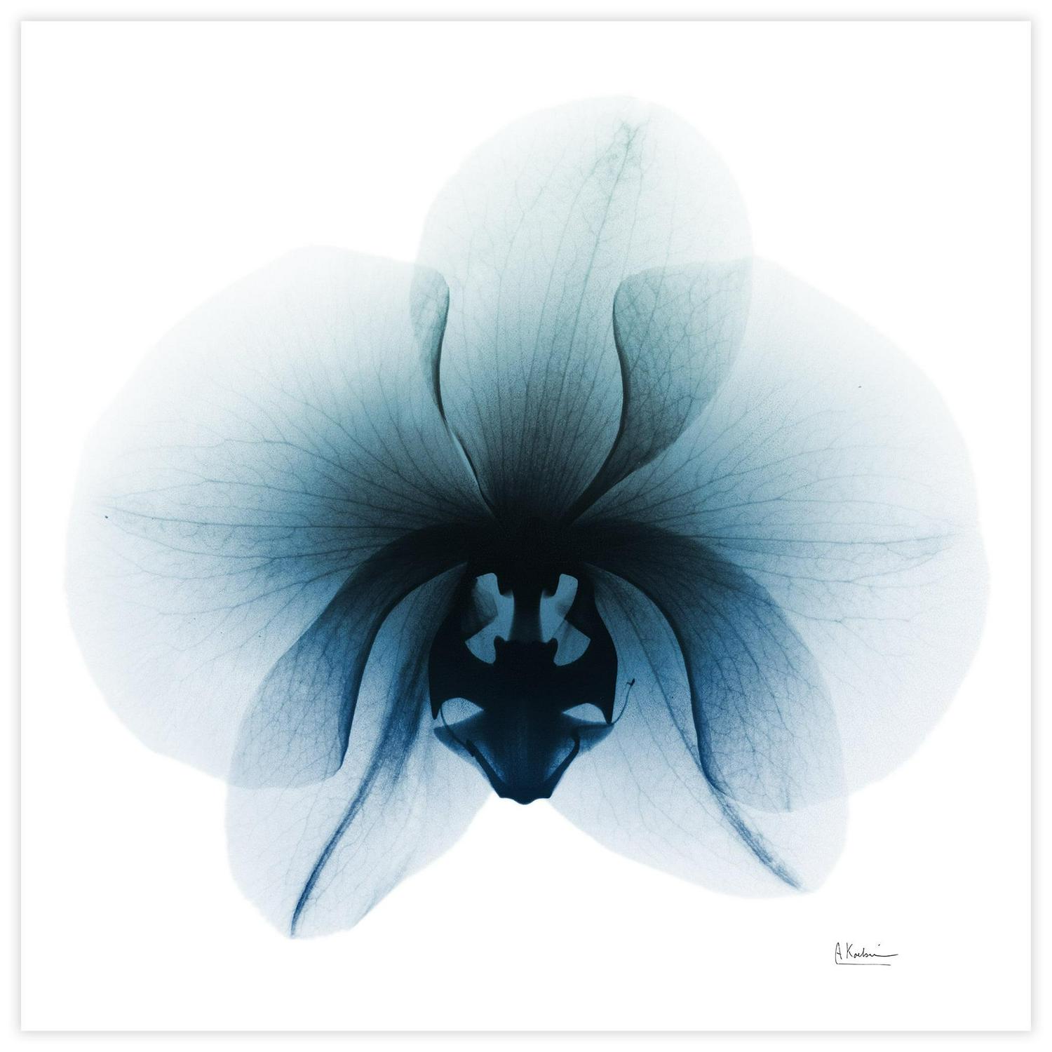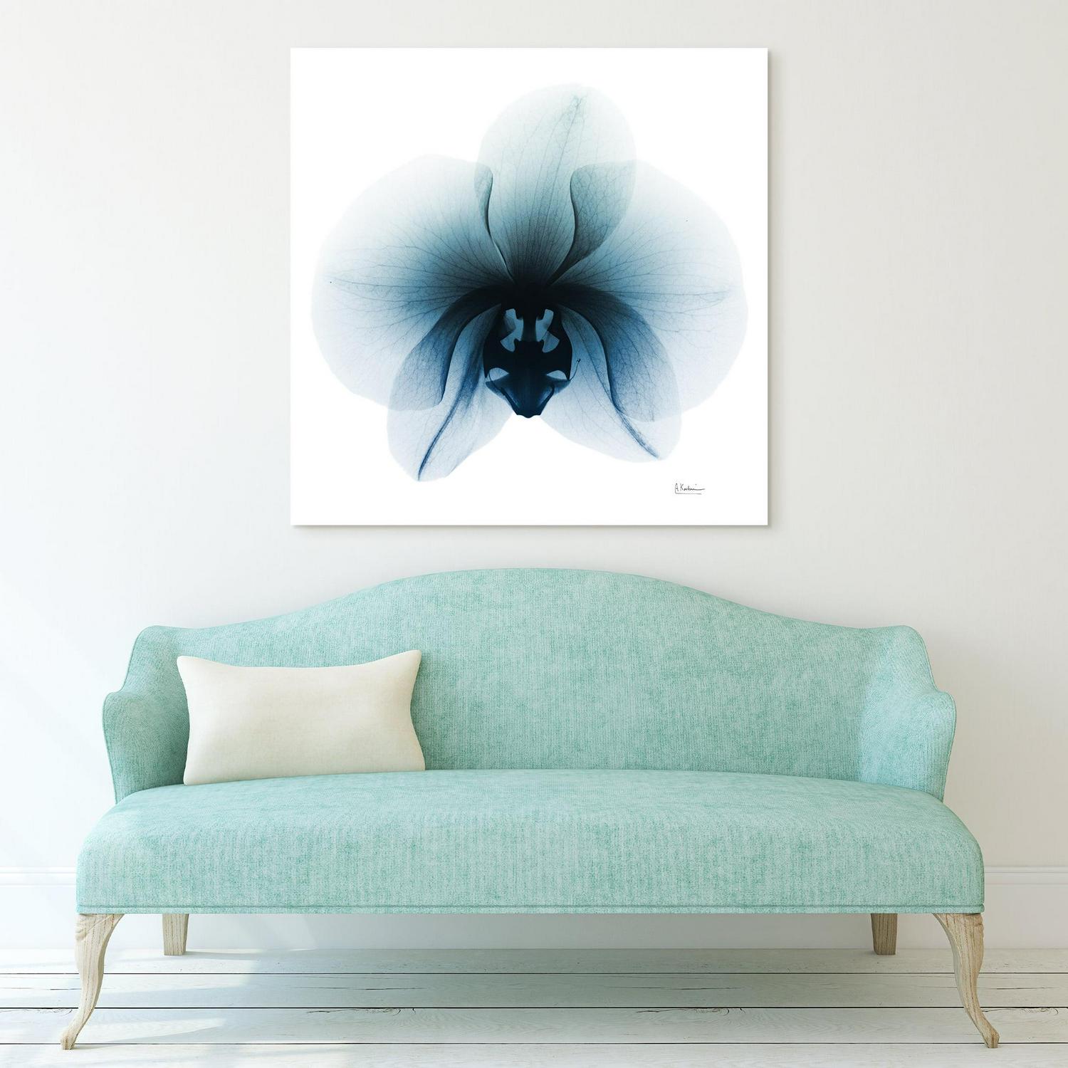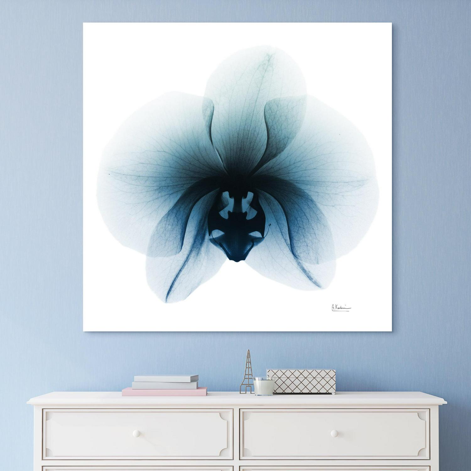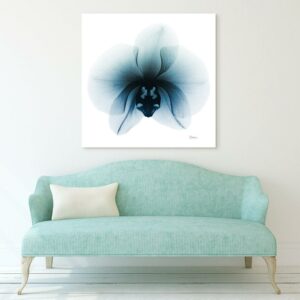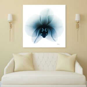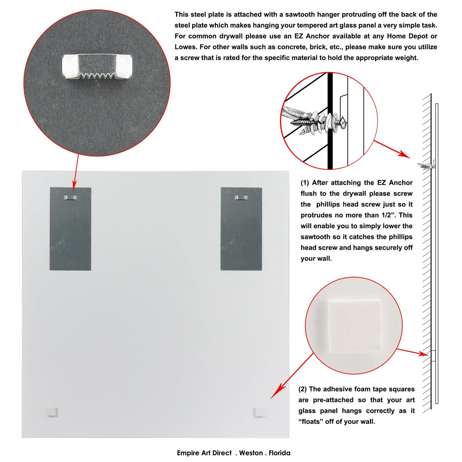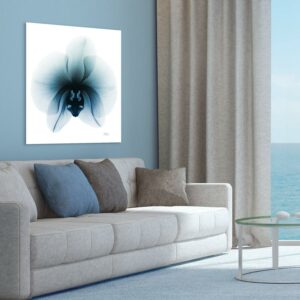 Empire Art Direct s collection of printed, frame-less, free floating, tempered glass was inspired by the French technique of Verre Eglomise in which artist’s literally painted the back of clear glass. Because of this when viewed from the front, the painting is brought to life under the depth of the glass. In collaboration with Albert Koetsier, this beautiful piece displays an X-Ray image of a blue glacial orchid. 2 strong steel hangers are attached to the back of the product for quick and easy installation.