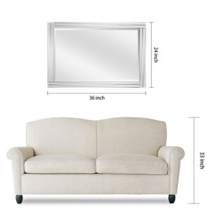 This 36″ x 24″ wall mirror is ideal for adding more utility to a wall and enhancing the space of a room, making it feel larger and lighter. The mirror has a solid wood frame, sturdy and long-lasting, while the panels are clear mirror with a slight bevel. The bevel is 1 inch and serves to slightly extrude the mirror, giving it more texture and shape. It is a perfect focal point with a minimalistic and contemporary appearance for an entryway, bathroom, bedroom or any room in your home. 4 D-rings are attached to the back of the mirror for quick and easy installation either vertically or horizontally. Packaged in strong carton with full protective corners and Styrofoam.
