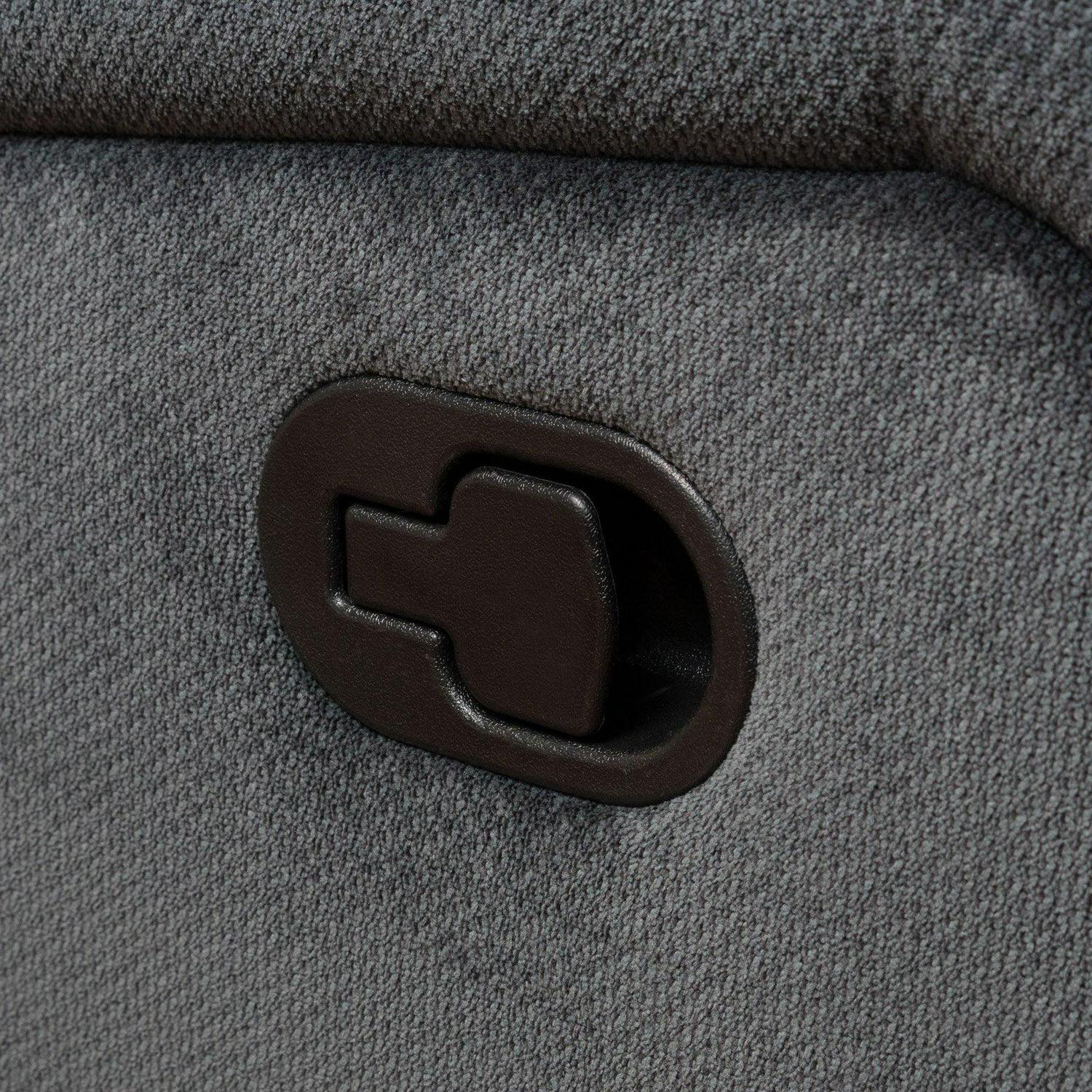 - Steel gray fabric upholstery
