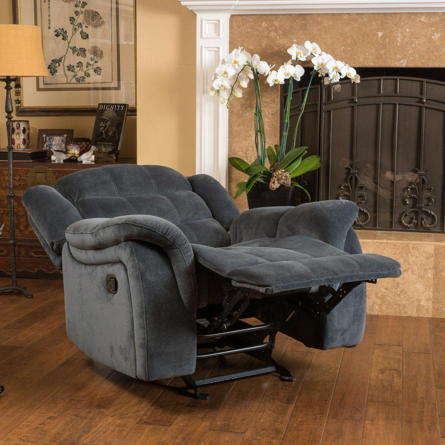 Emryka Contemporary Gray Fabric Glider Recliner