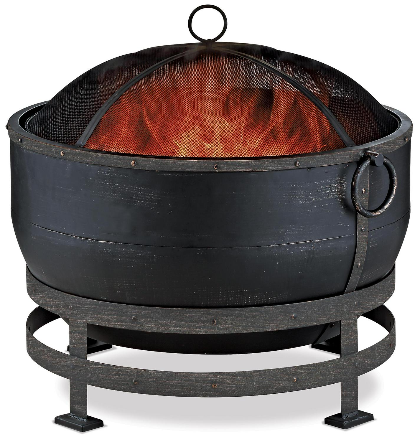 Bring the warmth and ambiance of a fireplace to your patio, deck or backyard with this stylish Endless Summer fire bowl. Featuring a kettle design, this fire pit will beautifully compliment your outdoor living space with its timeless look of hand forged metal work. With its patent pending Airflow technology, this fire pit features a vent that pulls in air and fans the flames, allowing your fire to burn hot and long. Standing 25.2 inches high, this fire pit is constructed of steel and features an oil rubbed bronze finish. Easy to install, load, and tend, no special tools are required for assembly. Easy to lift mesh spark guard included.
