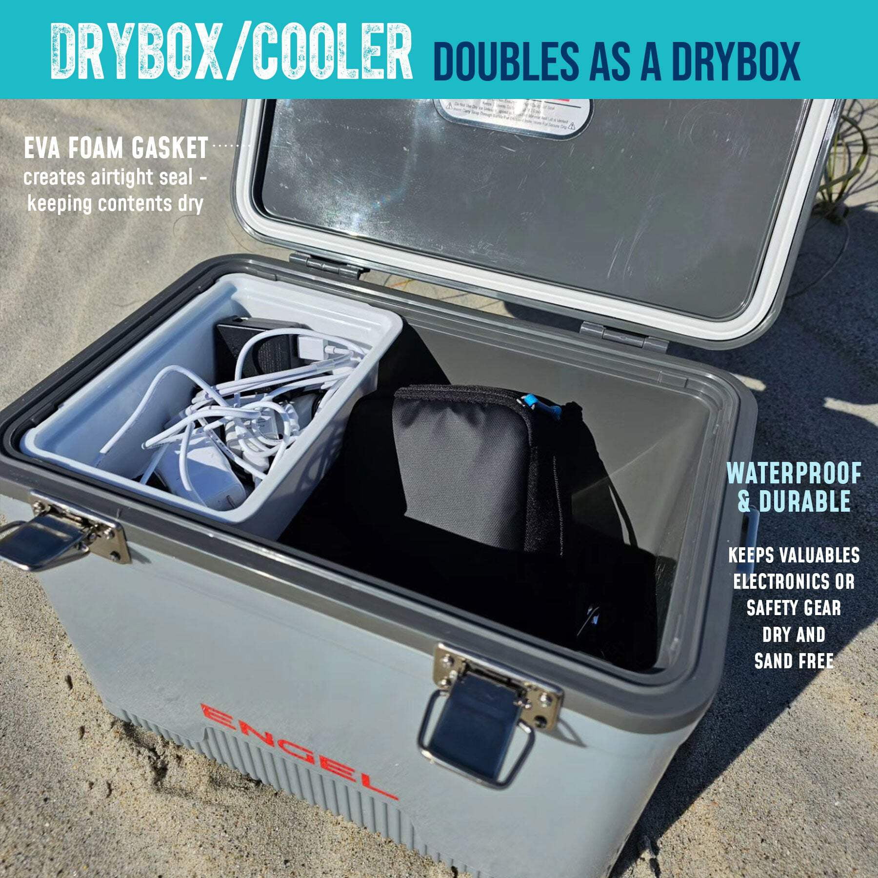 The ultimate leak-proof air-tight drybox/cooler. Ideal for hunters and kayak fishermen. Load it onto the back of your 4-wheeler or truck and head out for a great adventure outdoors. Keeps food and drinks cold. It doubles as a dry box – keeping out moisture and/or dust from your valuable electronics, emergency kits, and cameras. *High Viz Orange and Yellow may fade over time. Features Includes 1 x Hanging Accessory Tray Quality Injection Molded (PP Copolymer) Insulated with High-Grade molded Polystyrene Foam Airtight EVA Gasket Seal Recessed Ergonomic Carry Handles (ABS) & Integrated Shoulder Strap (PP) Self-Stopping Hinge (ABS) All Fittings Secured with Stainless Steel Screws Stain and Odor Resistant Non-Absorbent Surface Easy to Clean Compact and Lightweight Warranty: 5 Years