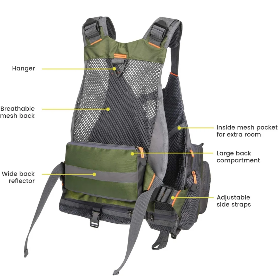 Fly Fishing Vest, Adjustable Strap Utility Fishing Vest For Camping