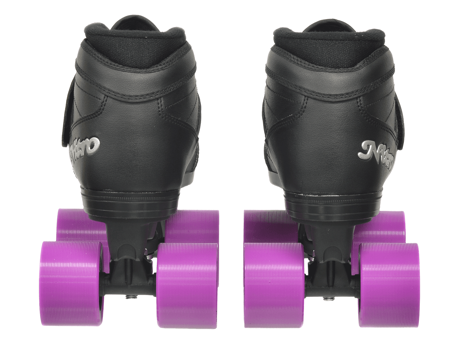 Epic Super Nitro Purple Speed Roller Skates Package: Epic skate bag: matching color 2 pair of laces: black and matching color Classic speed skate design Comfortable padded collar Man-made uppers Adjustable speed strap Black with silver highlights Plates: Epic nylon Lightweight nylon Double action trucks Black with black cushions Wheels: Epic nitro Quad speed skate wheels Purple with black hub For use on indoor and outdoor surfaces Bearings: Epic ABEC-5 8mm axle size Precision speed bearings Toe stops: Epic fixed toe stops Non-adjustable toe stops Non-marking compound Black, kids sizes Epic skates run true to size For more information regarding sizing please visit our website at or contact us directly