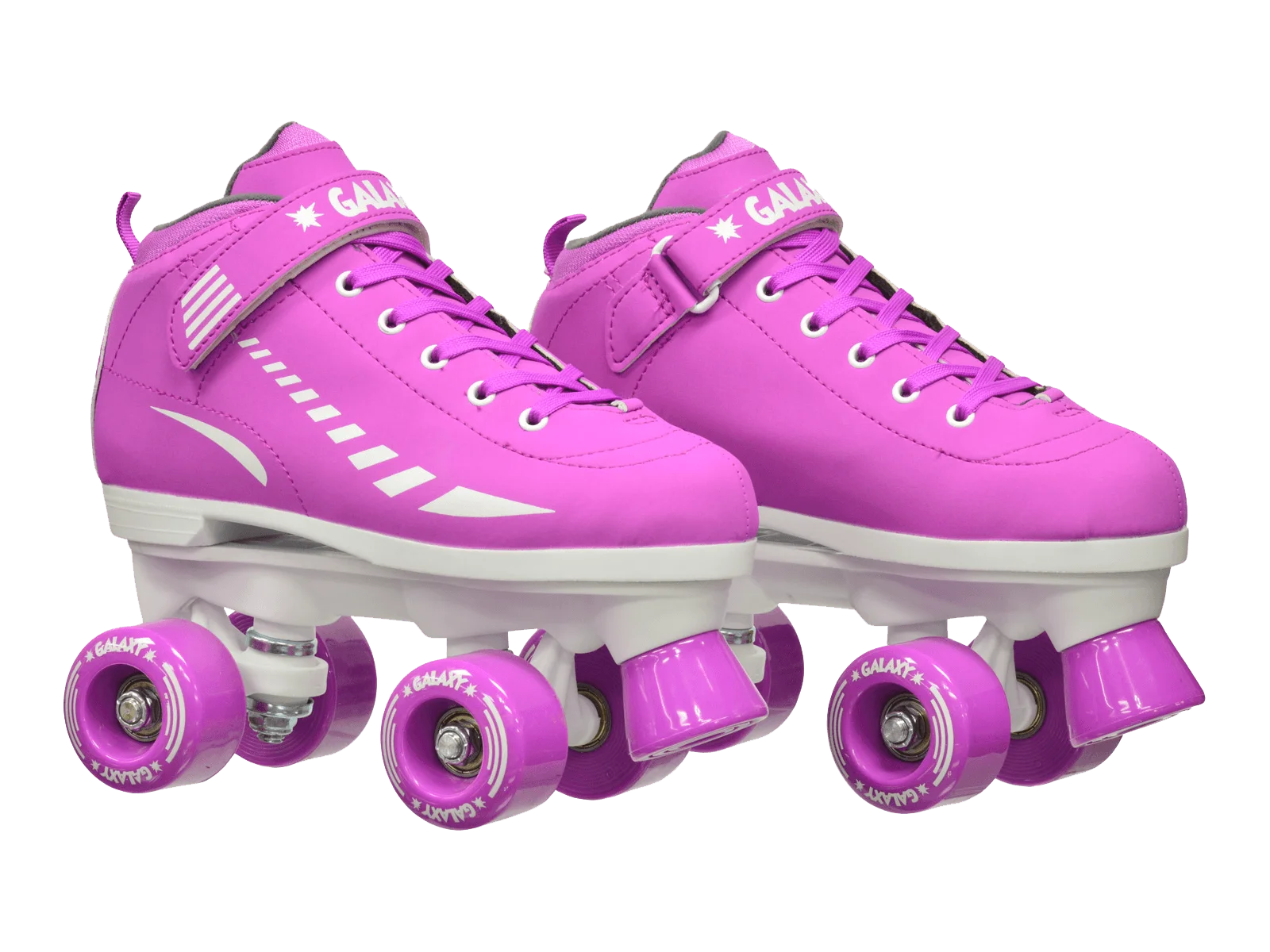 Epic Galaxy Elite Purple Quad Roller Skates are an excellent choice for a beginner skater looking for the comfort of a low top skate with the support of a high top boot. Epic Galaxy Elite skates make great kids skates thanks to an extra comfortable boot and the flexibility provided by the indoor/outdoor polyurethane quad roller skate wheels. All Epic Skates come standard with nylon plates, double action trucks, ABEC 3 Precision Speed bearing and two sets of laces!