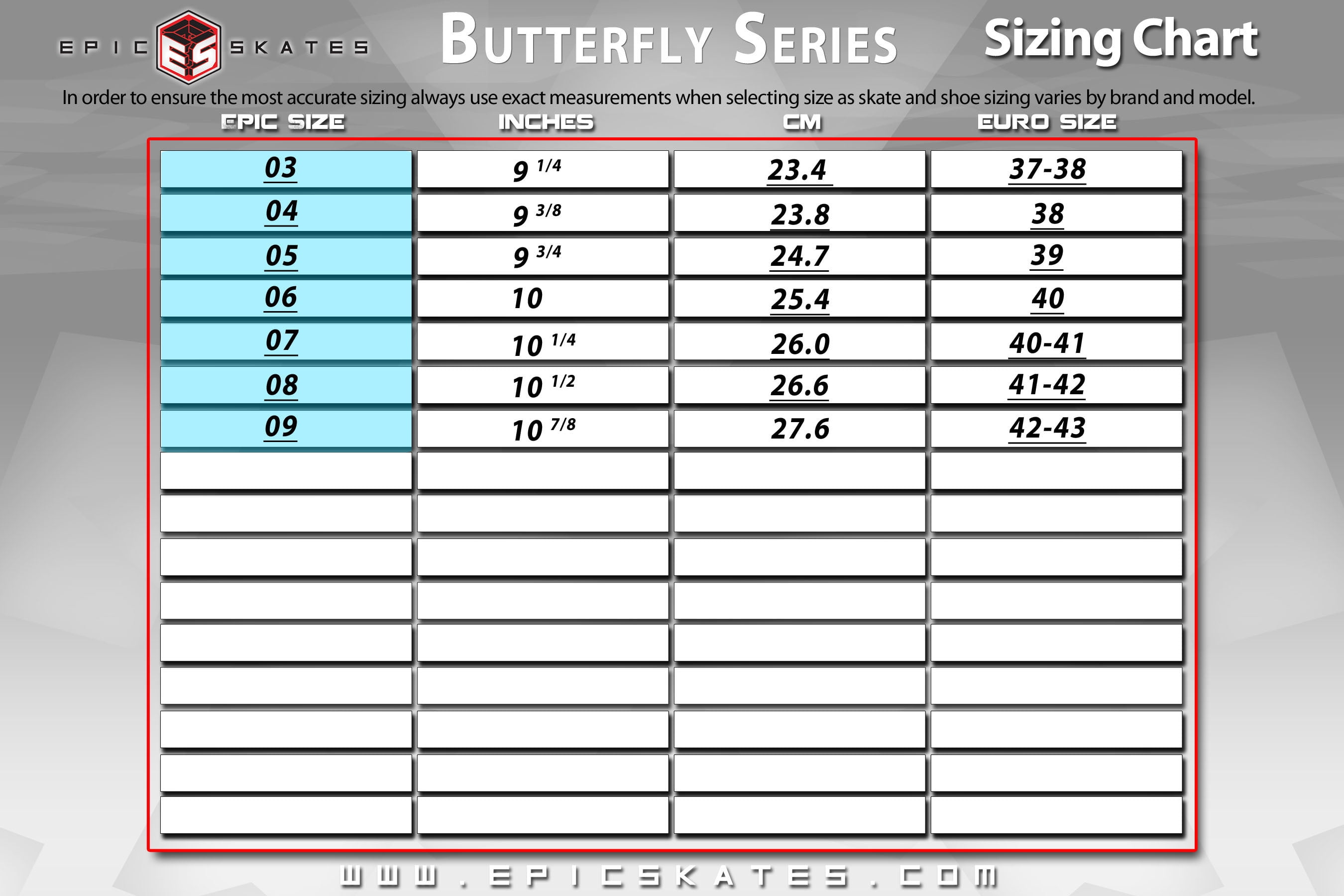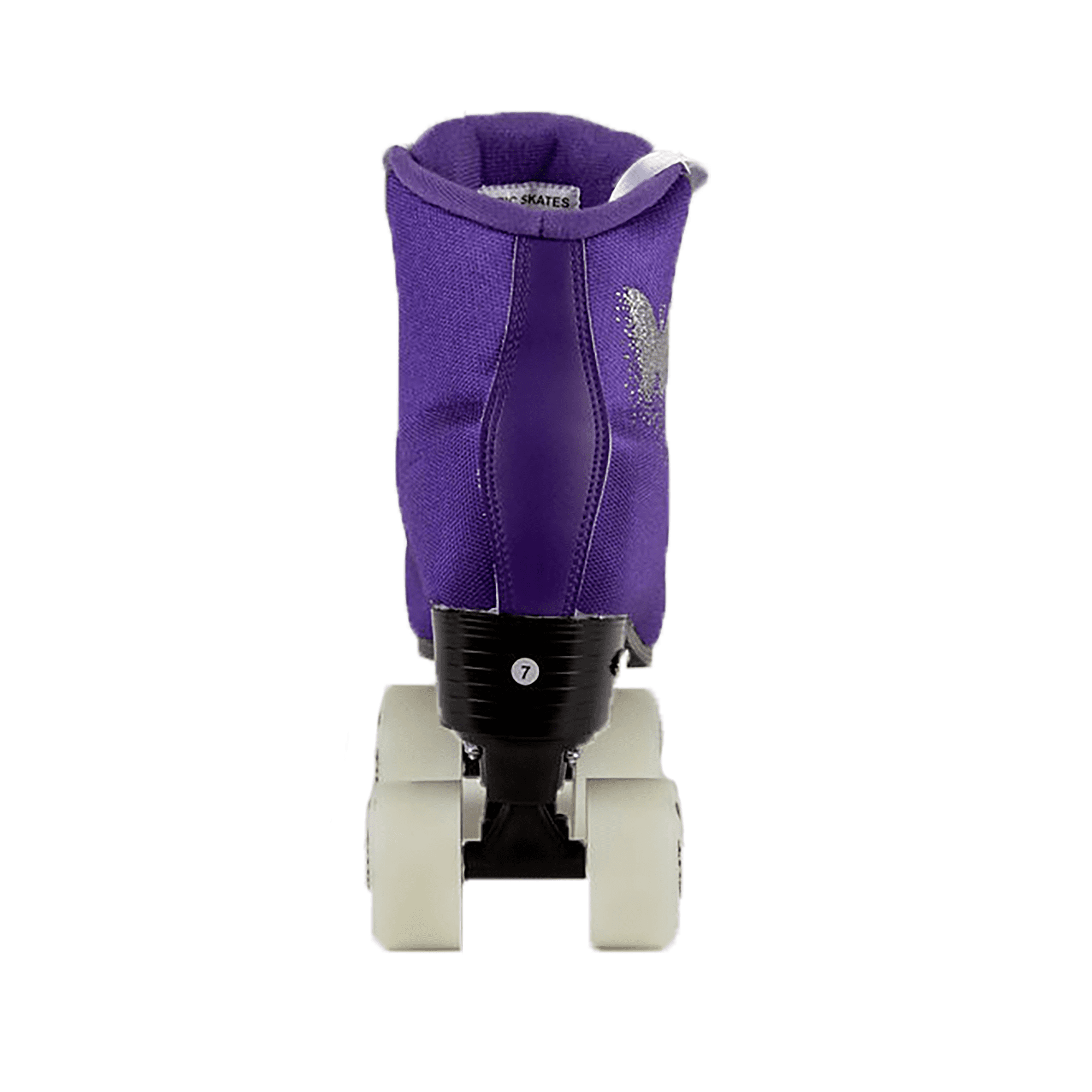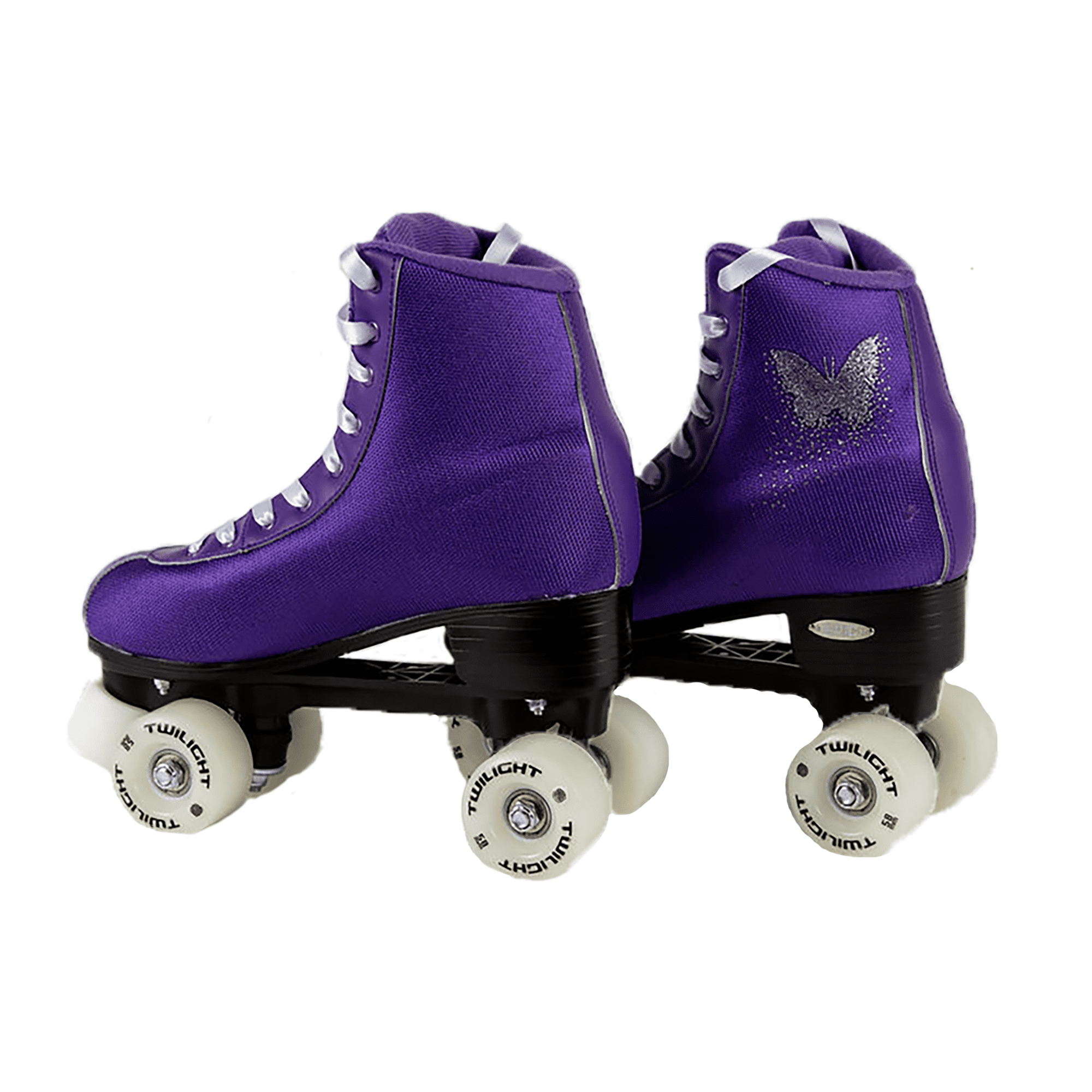 Epic Skates purple Butterfly Light-up Quad Roller Skates are super comfortable with a classic roller skate boot. Packed with excitement, these quad skates include bright, LED light-up wheels, white laces, and pom-poms. Put on your own “light show” as you cruise around the rink in these classically designed quad roller skates. Purple classic roller skate boot with silver butterfly design is super comfortable with padded upper lining and lace hooks, giving great ankle support.