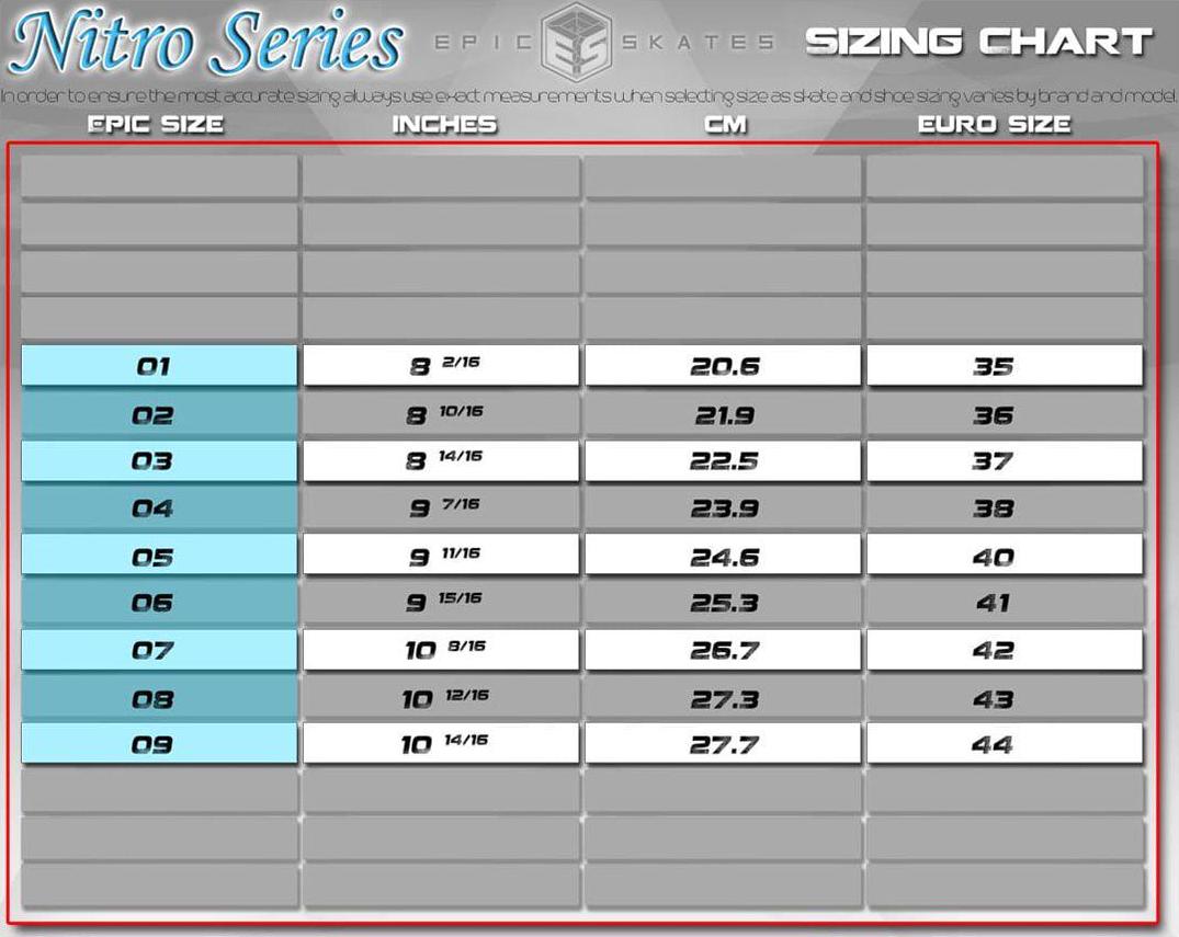 For more information regarding sizing please visit our website at www.epicskates.com or contact us directly.