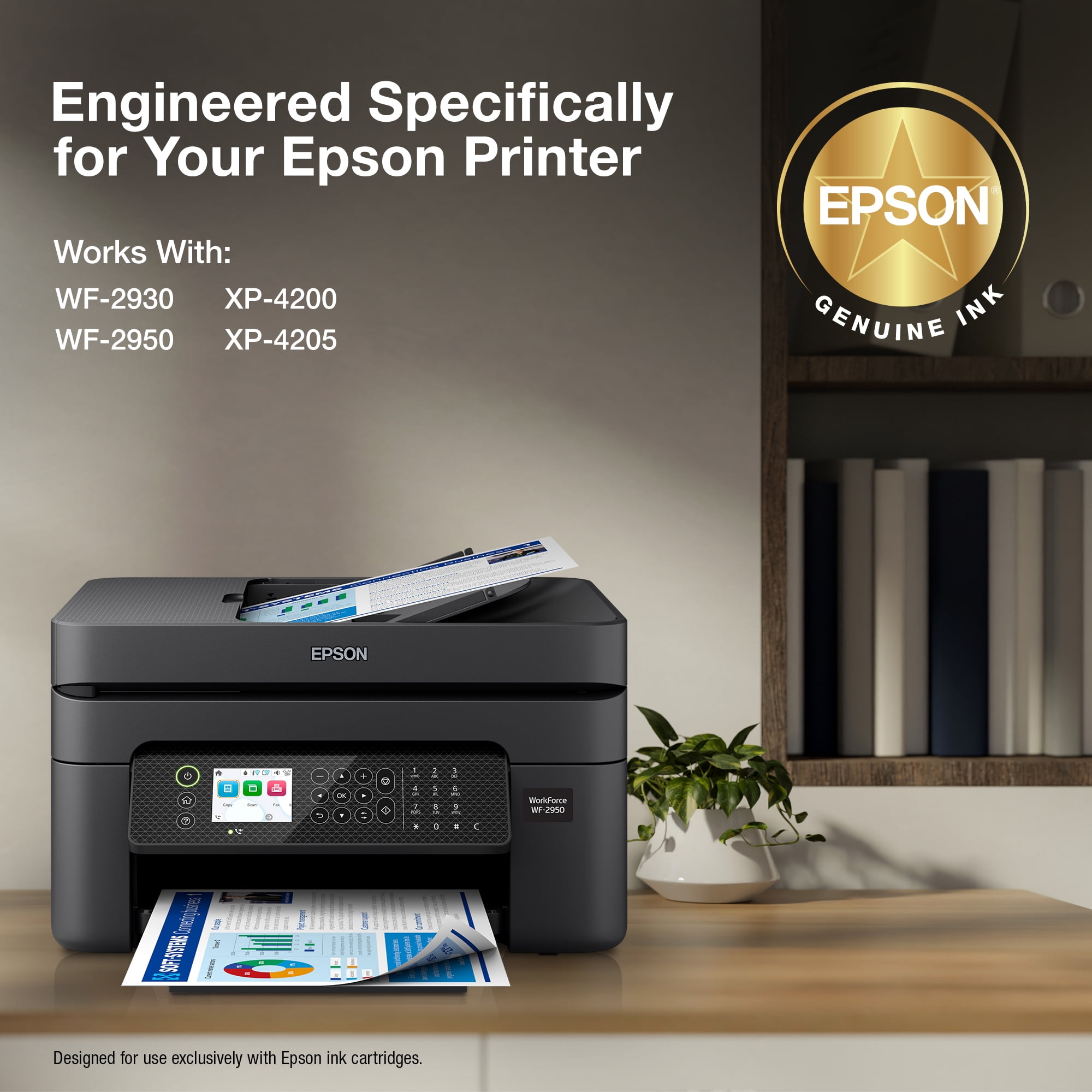 Epson printing system is designed to be used exclusively with Epson Genuine Cartridges. Use of non-genuine ink could cause damage not covered under the printer’s limited warranty. Sharp text and brilliant color for high-quality results; fast-drying ink Brilliant prints on both plain and glossy paper Convenient individual ink cartridges Compatible Printers – XP-4200, XP-4205, WF-2930, WF-2950