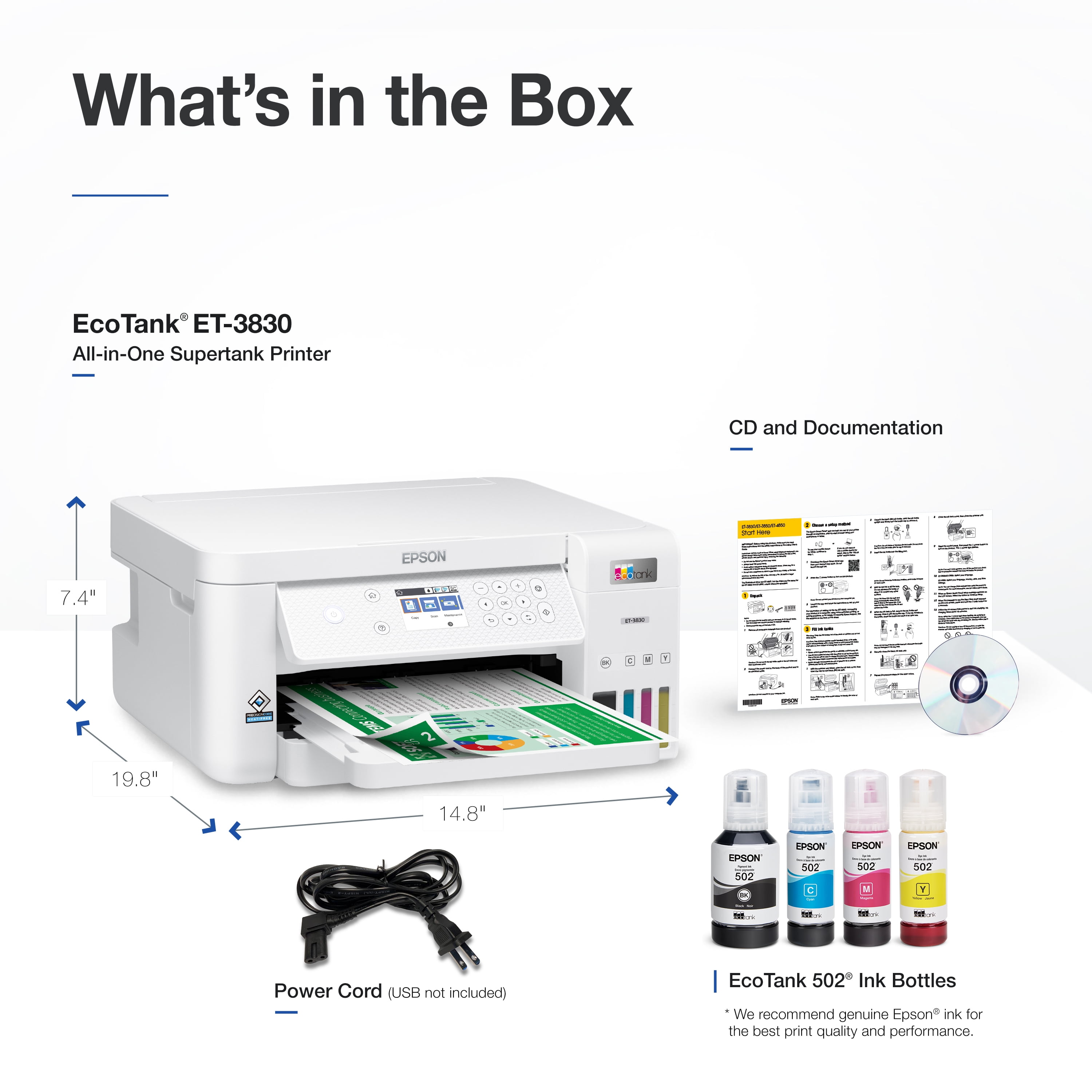 Epson EcoTank ET-3830 Wireless All-in-One Supertank Printer, Copy/Print/Scan