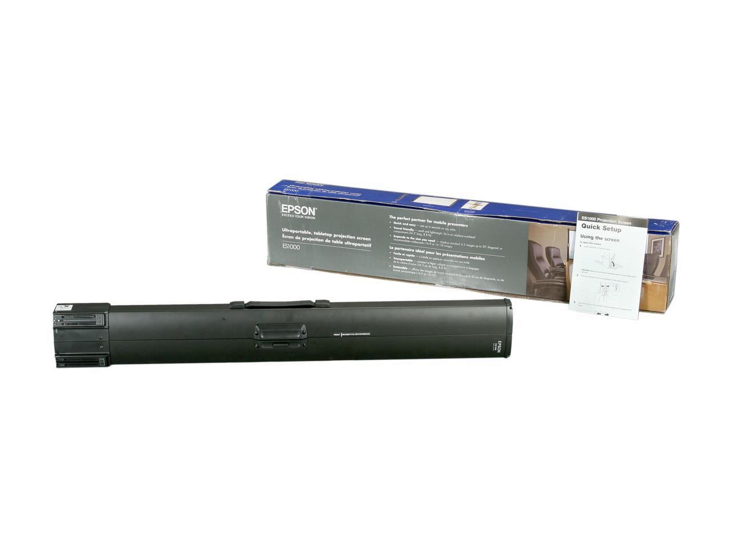 The ES1000 ultra portable tabletop projection screen is the ultimate screen for mobile professionals. Whether you’re walking across town, commuting by car or flying to your next destination, this lightweight, compact screen is the perfect traveling partner for on-the-go presentations. When you’re ready to present, the ES1000’s unique one-piece design allows you to set up quickly and easily on any tabletop in less than 30 seconds. It conveniently accommodates up to a 50″ (diagonal) image. When it’s time to shut down, the ES1000 stores quickly and easily in just seconds.