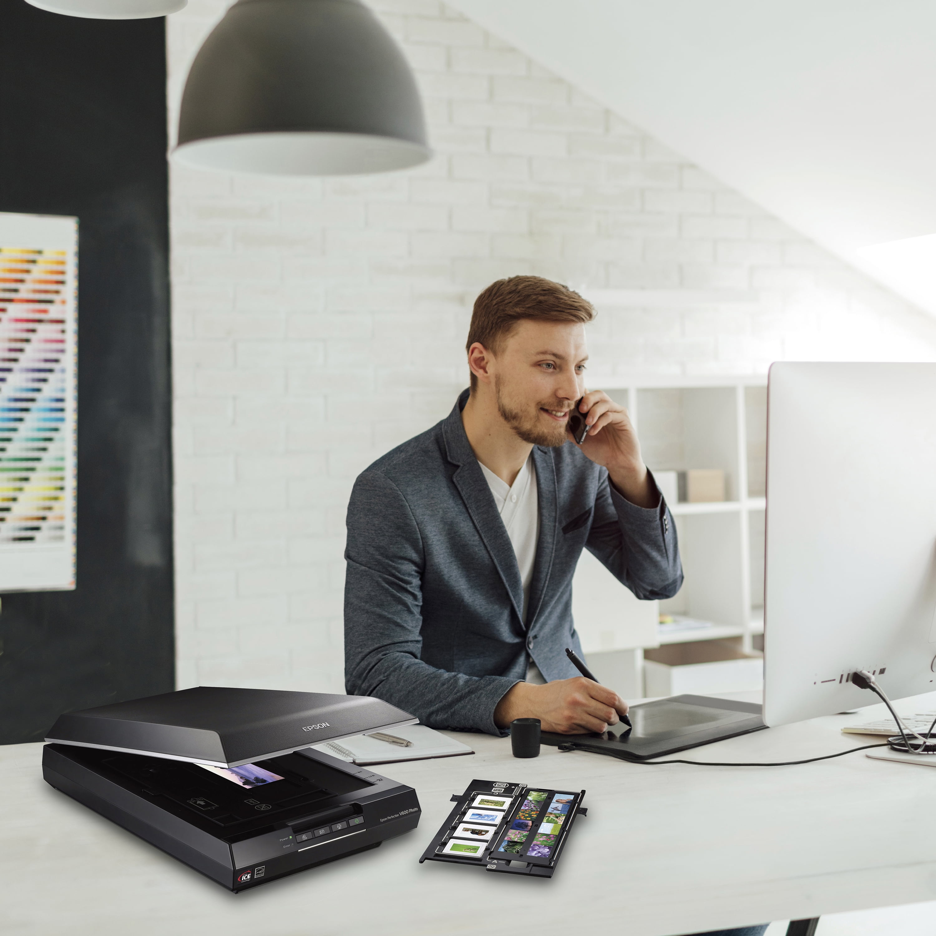 Create professional-quality images easily with this Epson Perfection V600 Scanner 6400 x 9600 dpi. It has Digital ICE technology that corrects prints. It also features a built-in transparency unit that allows you to scan film. Additionally, it has a Ready Scan LED light source, requiring no warm-up time and lower power consumption. This Epson Perfection scanner offers the increased versatility of four customizable buttons, that let you instantly scan, copy, scan-to-email, and create PDFs with ease. Plus, the Photo Fix and Adobe Photoshop software help edit and enhance all of your digital images. This high-performance provides a complete photo restoration solution for your home or business.