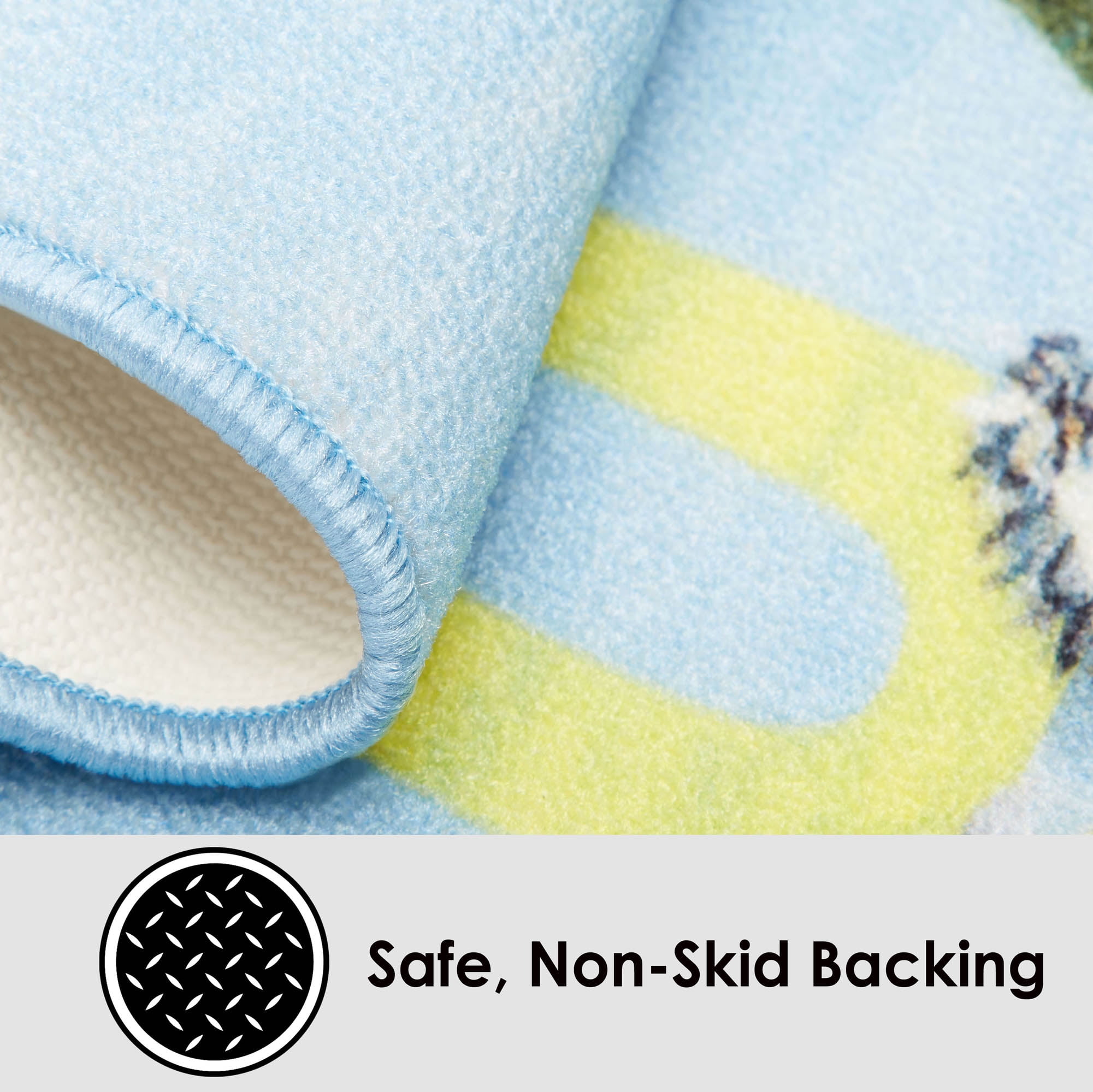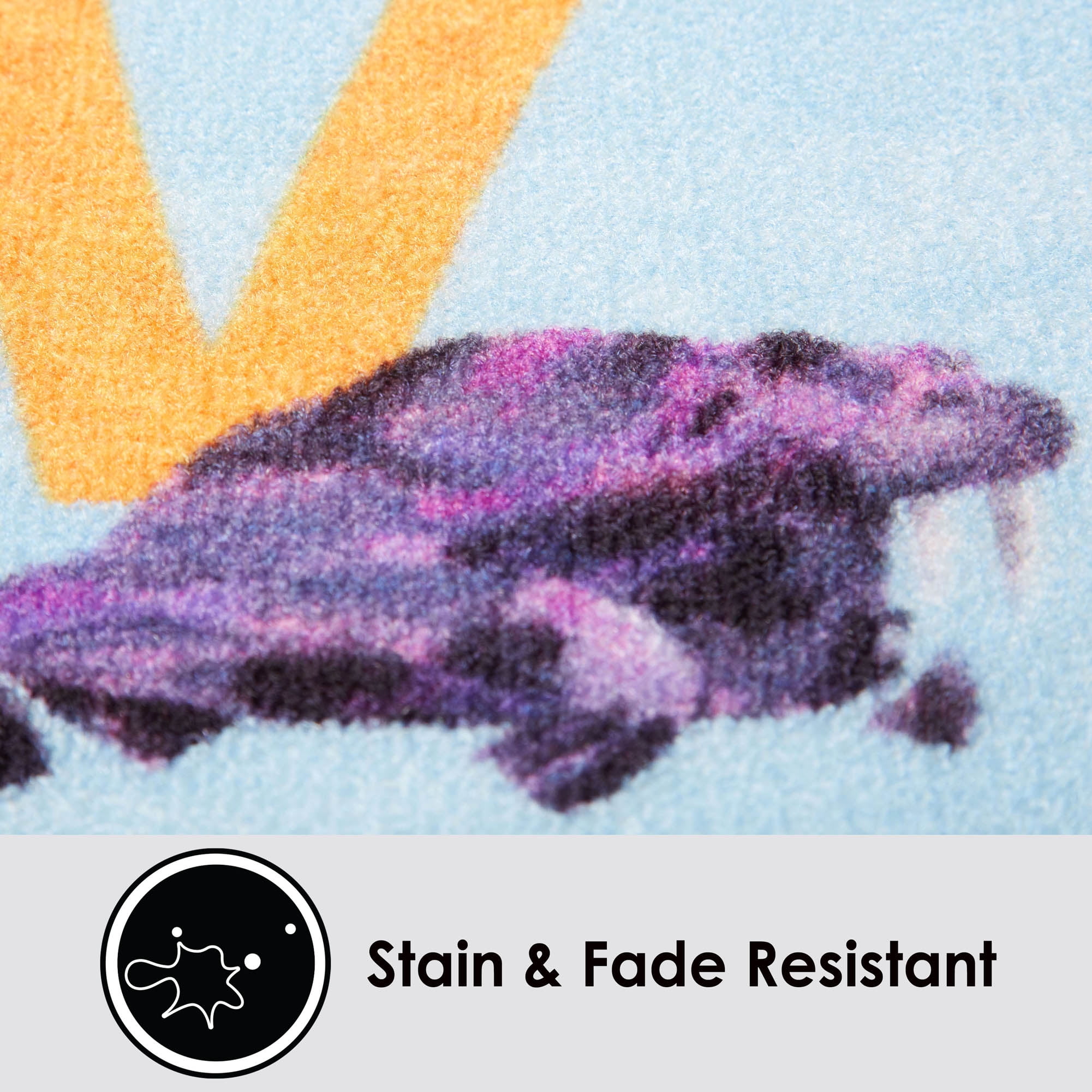 CHEERFUL & EDUCATIONAL: The Eric Carle Elementary Blue Alphabet rug by Home Dynamlx brings the artist’s cheerful and educational illustrations to life. It features the letters of the alphabet and friendly animals in blue, orange, purple and yellow. AVAILABLE IN A VARIETY OF AREA RUG SIZES: 2 x 4 rugs, 4 x 6 rugs and 7 x 10 rugs. WELL-CRAFTED WITH NON-SKID BACKING: Made with 100% polyester yarns in a power-loomed construction, this durable, decorative rug is designed to last. A non-skid latex backing prevents slipping and sliding so children can play safely. IDEAL FOR CHILDREN’S ROOMS: This colorful design is stain resistant, making it ideal for children’s bedrooms, playrooms, and classrooms. EASY CLEAN & LOW MAINTENANCE: This easy-clean rug is machine washable, so there’s no need to worry about stains and spills.