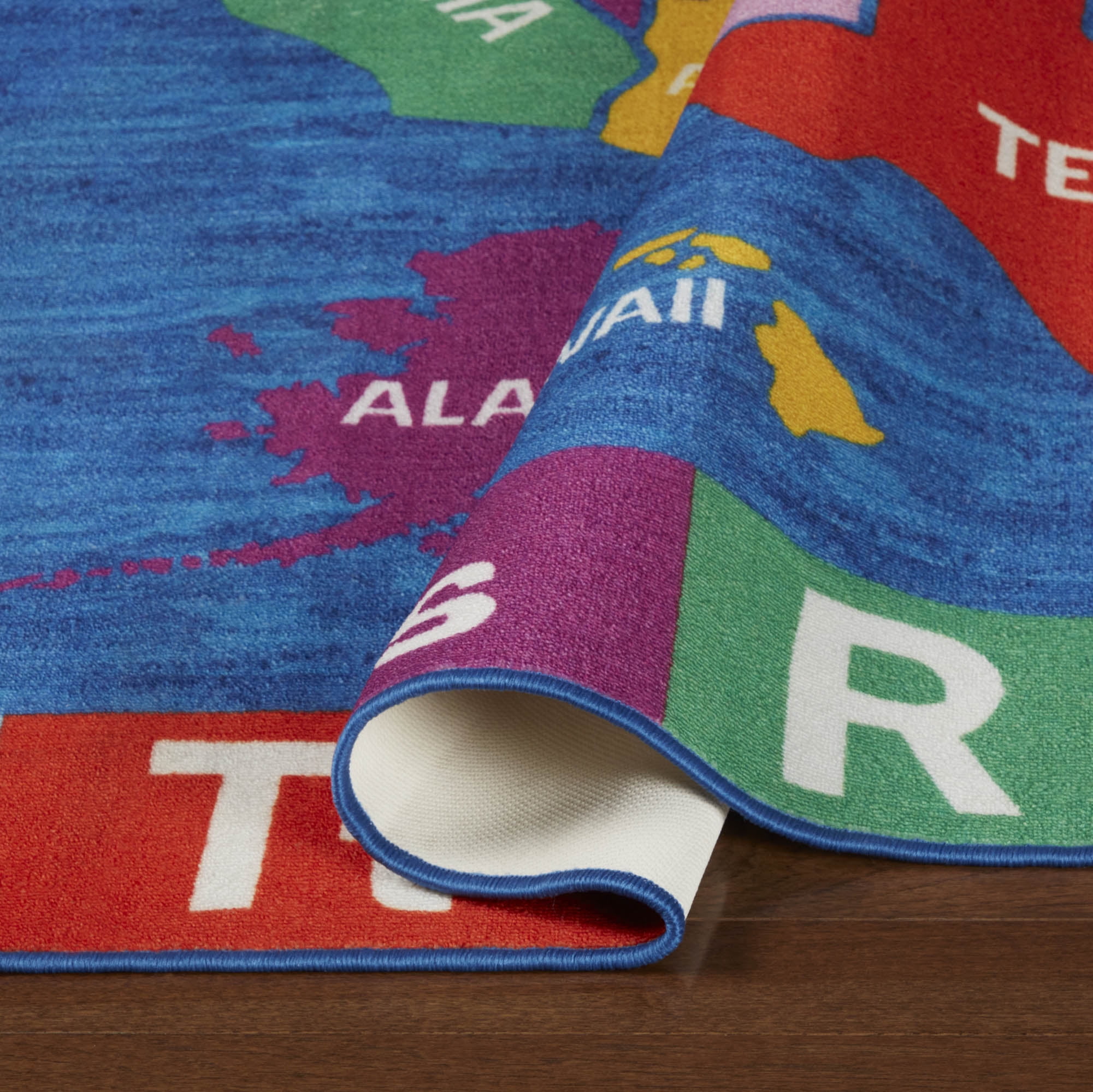 CHEERFUL & EDUCATIONAL: The Eric Carle Elementary USA Map rug by Home Dynamlx brings the artist’s cheerful and educational illustrations to life. It features a USA map with an alphabet border in bright shades of red, yellow, blue and purple. AVAILABLE IN A VARIETY OF AREA RUG SIZES: 2 x 4 rugs, 4 x 6 rugs and 7 x 10 rugs. WELL-CRAFTED WITH NON-SKID BACKING: Made with 100% polyester yarns in a power-loomed construction, this durable, decorative rug is designed to last. A non-skid latex backing prevents slipping and sliding so children can play safely. IDEAL FOR CHILDREN’S ROOMS: This colorful design is stain resistant, making it ideal for children’s bedrooms, playrooms, and classrooms. EASY CLEAN & LOW MAINTENANCE: This easy-clean rug is machine washable, so there’s no need to worry about stains and spills.