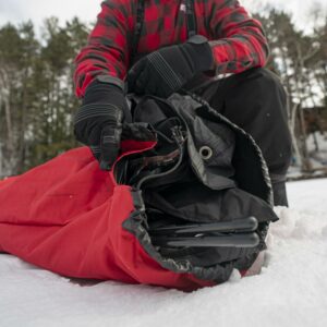 - Keep your essential fishing gear handy and out of the bottom of the sled