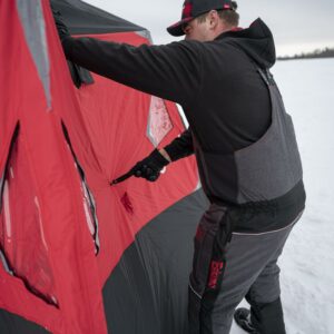 – Deluxe, cam strap tie-downs are included for rugged, solid anchoring in windy conditions. Ice anchor grommets are now included directly in the shelter skirt for convenience.