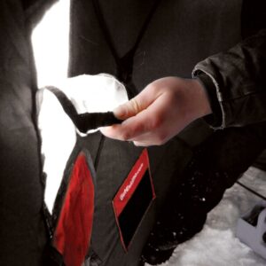 – IN-SKIRT ICE ANCHOR GROMMETS Easily place your ice anchors through grommets located directly in the skirt material eliminating the hassle of finding and holding a separate grommet tab.