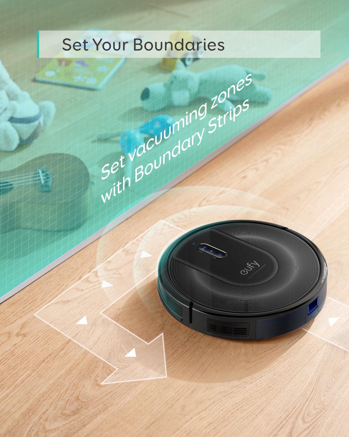 – Set Boundary Strips: Exclude your kid s play area or your pet s bed. RoboVac uses specialized dual-Hall Sensors to detect the Boundary Strips you set, ensuring it only cleans the areas required