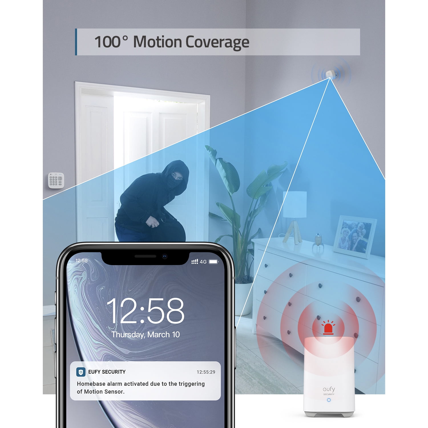 Experience peace of mind with the eufy 5-Piece Home Alarm Kit, your comprehensive solution for home protection. Regardless of your home’s size, this kit has you covered with a keypad, motion sensor, and entry sensors to safeguard key areas of your house. Stay updated on home activities with instant notifications from each device, all securely linked to HomeBase 2. Setting up your new security system is a breeze. Simply mount the keypad and motion detectors on your walls, then attach the entry sensors to your doors and windows. Manage your home security effortlessly from any location. With the eufy Security App, you’ll receive instant alerts on your smartphone when sensors are triggered. In case of a false alarm, disable the system with a simple tap on the App. Just one charge will power the entry sensors and motion detector for 2 years, and the keypad for 6 months to keep your home secure and family safe.