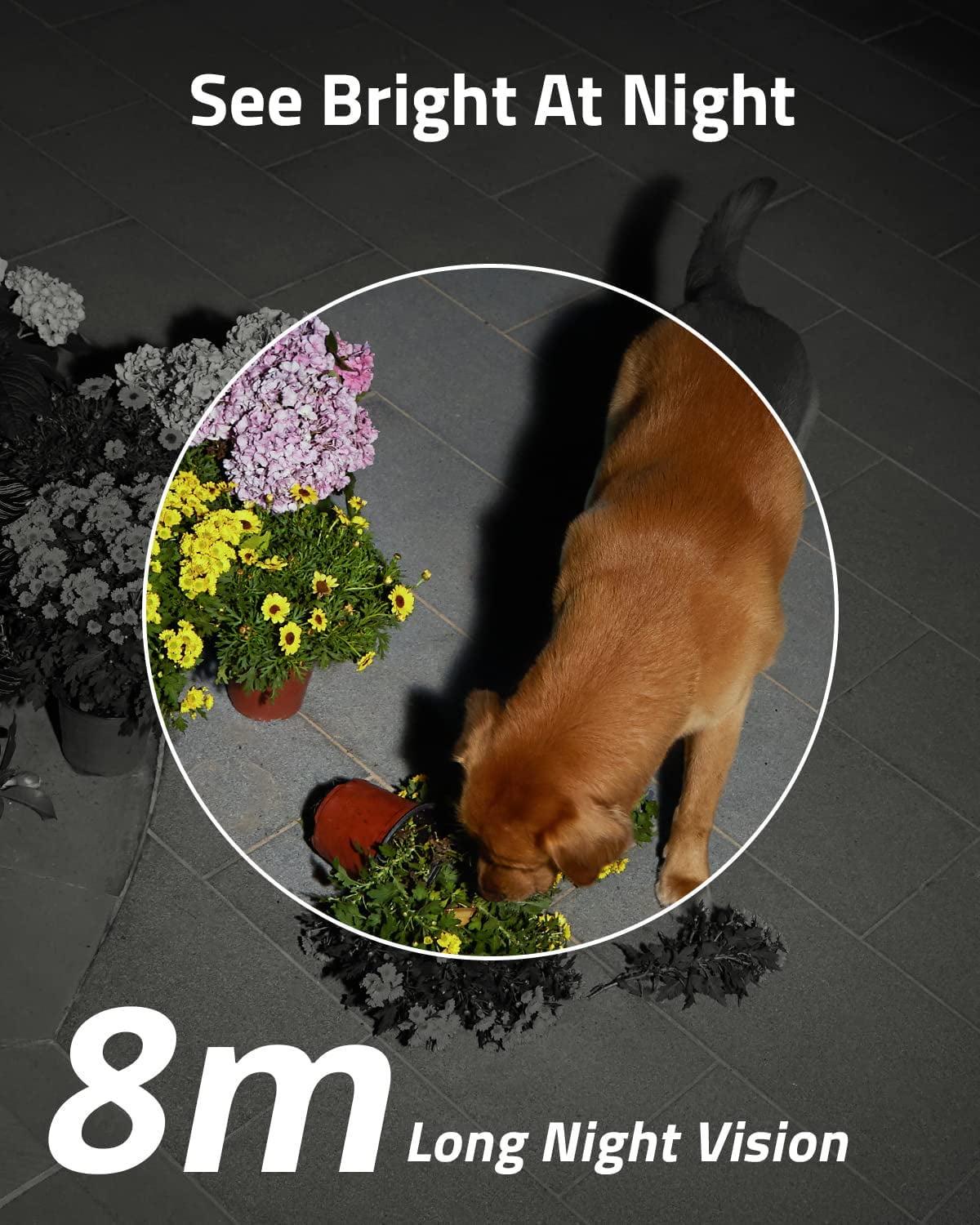 – Light Up the Night-The ultra-bright 600 Lumens spotlight switches on as soon as motion is detected, shining a light on any unwanted guests, while the color night vision picks out details in the darkness up to 8 meters away