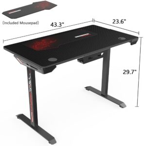 Eureka Ergonomic I1-S 43.3 Inch T-Shaped Small Home Office PC Gaming Computer Desk, Writing Study Tables Popular Gift for E-Sports Lover, Black