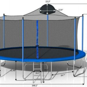Engage in endless fun and exercise with the outdoor trampoline. We always put the quality of our products first. You can have fun with your child on a trampoline safely. Show off your basketball technology with the 14 Foot Trampoline. Constructed with long lasting durability in mind, the trampoline is expertly designed with high quality materials a spacious premium UV Protected bounce mat, heavy-duty frame and coiled springs, wear resistant protective foam and more, making your trampoline able to use for a long time, family and friends able to bounce for years to come. Enjoy your trampoline worry free with the 360 degree taut netting that tightly wraps around the trampoline up to over 6 feet high, designed to safely contain the highest bounces.