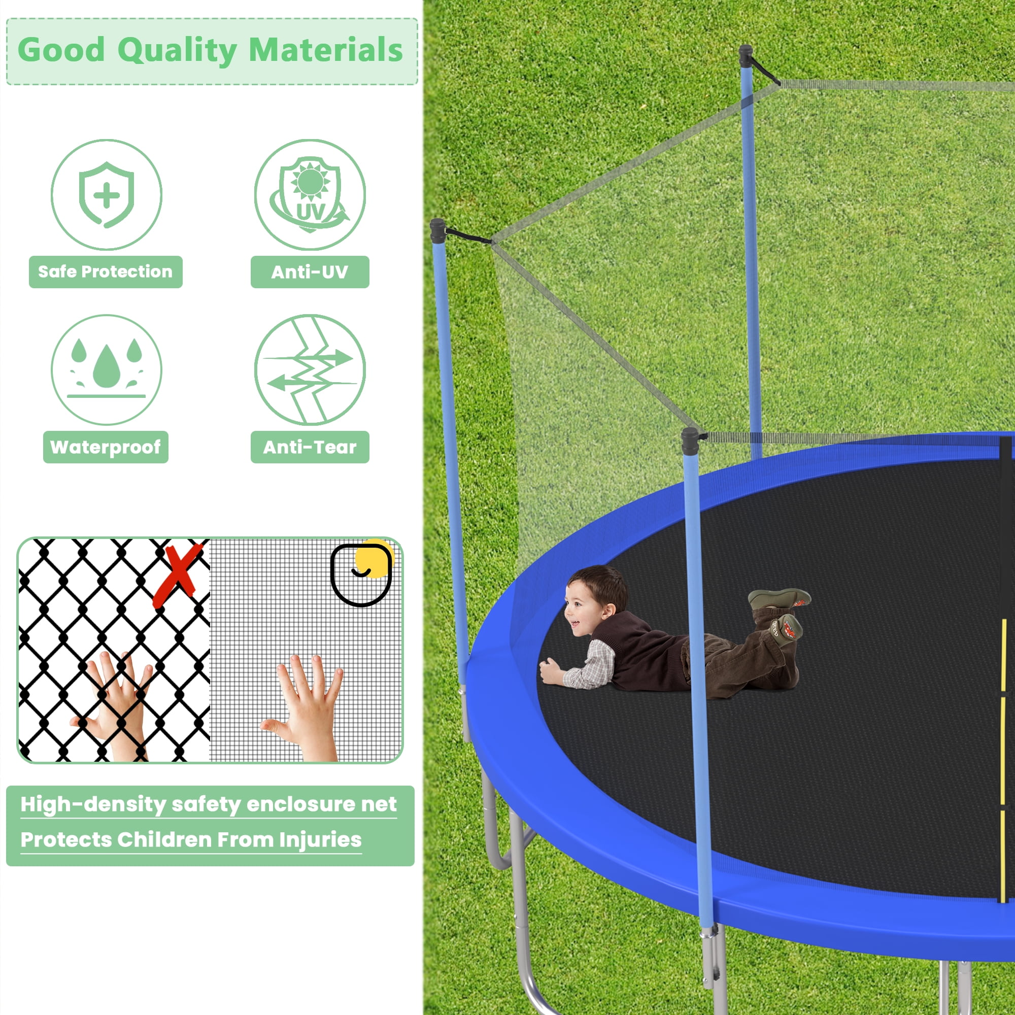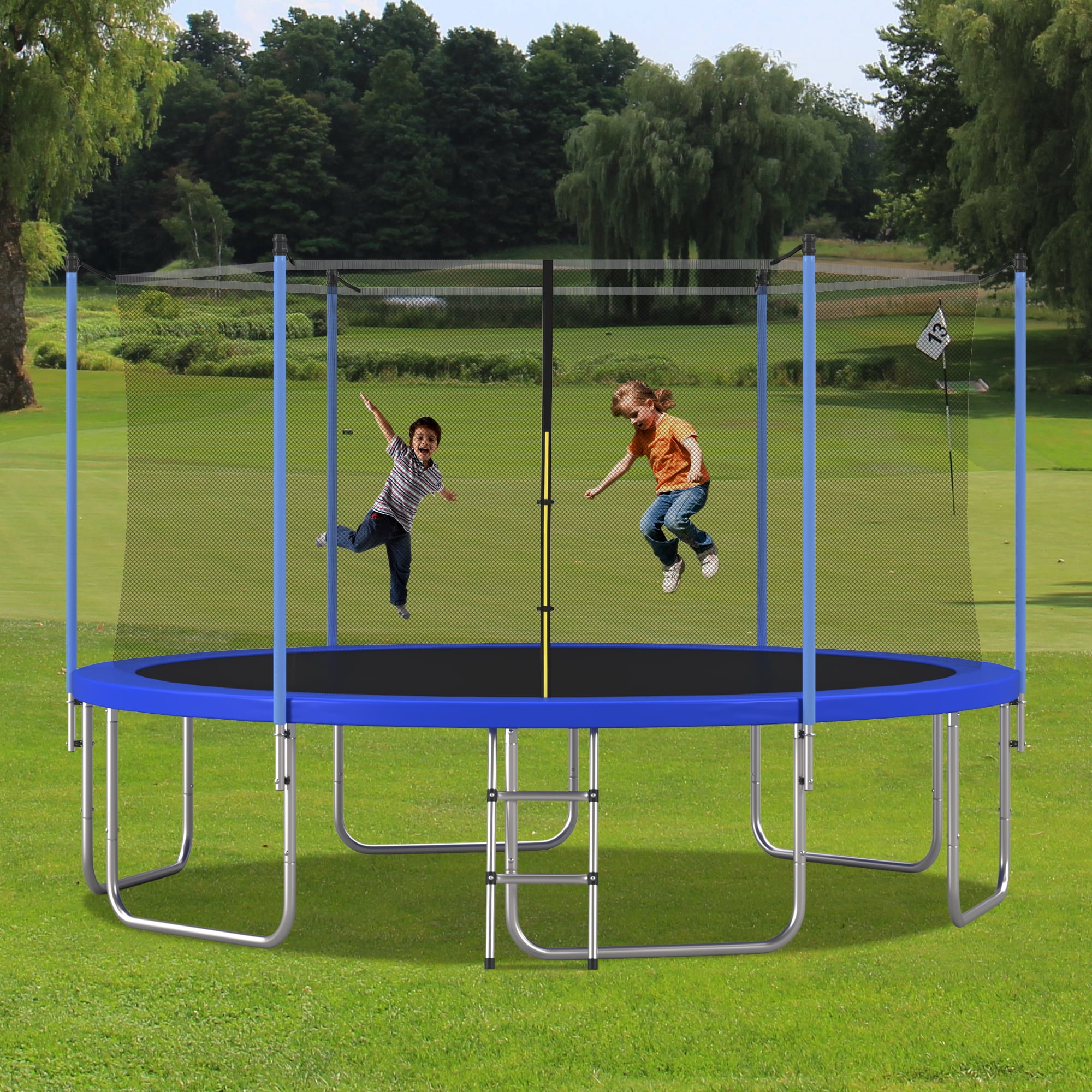 Euroco are committed to upgrading and updating trampoline products, using high-quality materials that are safer and more reliable, and will leave your child with interesting childhood memories! 【Active & Interesting】Bring a brand new way of entertaining your energetic and tireless children. Let safe jumping exercise improve kids’ coordination, balance, and cardiovascular health. Our trampoline is equipped with an inner type safety enclosure net and can separate kids from the outer safety pole, which is an excellent choice for your exclusive amusement park in your backyard. 【Safety First】When it comes to children, parents always pay their utmost attention to confirm the safety issues. This trampoline consists of 72 sturdy and flexible springs, combined with a high-elastic, tough jumping mat, which can ensure the stability of each bounce. We use a redundant spring configuration to ensure a soft impact and avoid excessive tension on the feet and joints, so as not to make the child feel uncomfortable. 【Excellent Structure and Materials】The mainframe of the trampoline is supported by high-quality galvanized steel, 6 sets of sturdy leg tubes provide the extra maximum bearing capacity and protection, which can fully hold the unlimited vitality of children. The top rails are fixed with specially designed and extra reinforced T-joints to provide excellent stability, and the upgraded W-shaped leg assumes the sturdy base function. 【Careful Care】This trampoline is equipped with a full-size safety cover pad and by being carefully fixed it can protect your children from any potential injuries while playing. The sturdy two-step ladder provides straight navigation on and off the trampoline. The round design of the overall edge aimed to fully protect children from scratches and squeezing. 【Easy Setup】Easy installation with step-by-step instructions. This set comes in 1 box to avoid the hassle of receiving extra packages. Our 14FT trampoline assembled dimensions: 14′ x 8.5′ (Feet).