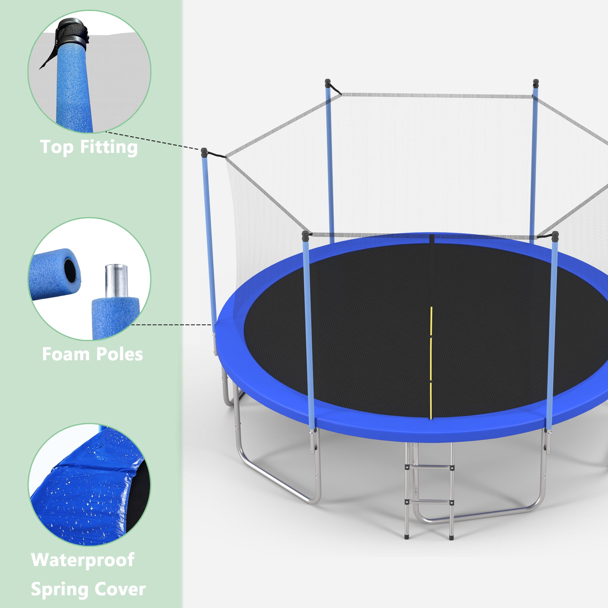 EUROCO 1500LB 14FT Trampoline for Adults and Kids, Trampoline with Enclosure ,Ladder,Heavy Duty Recreational Trampoline Capacity for 7-8 Kids