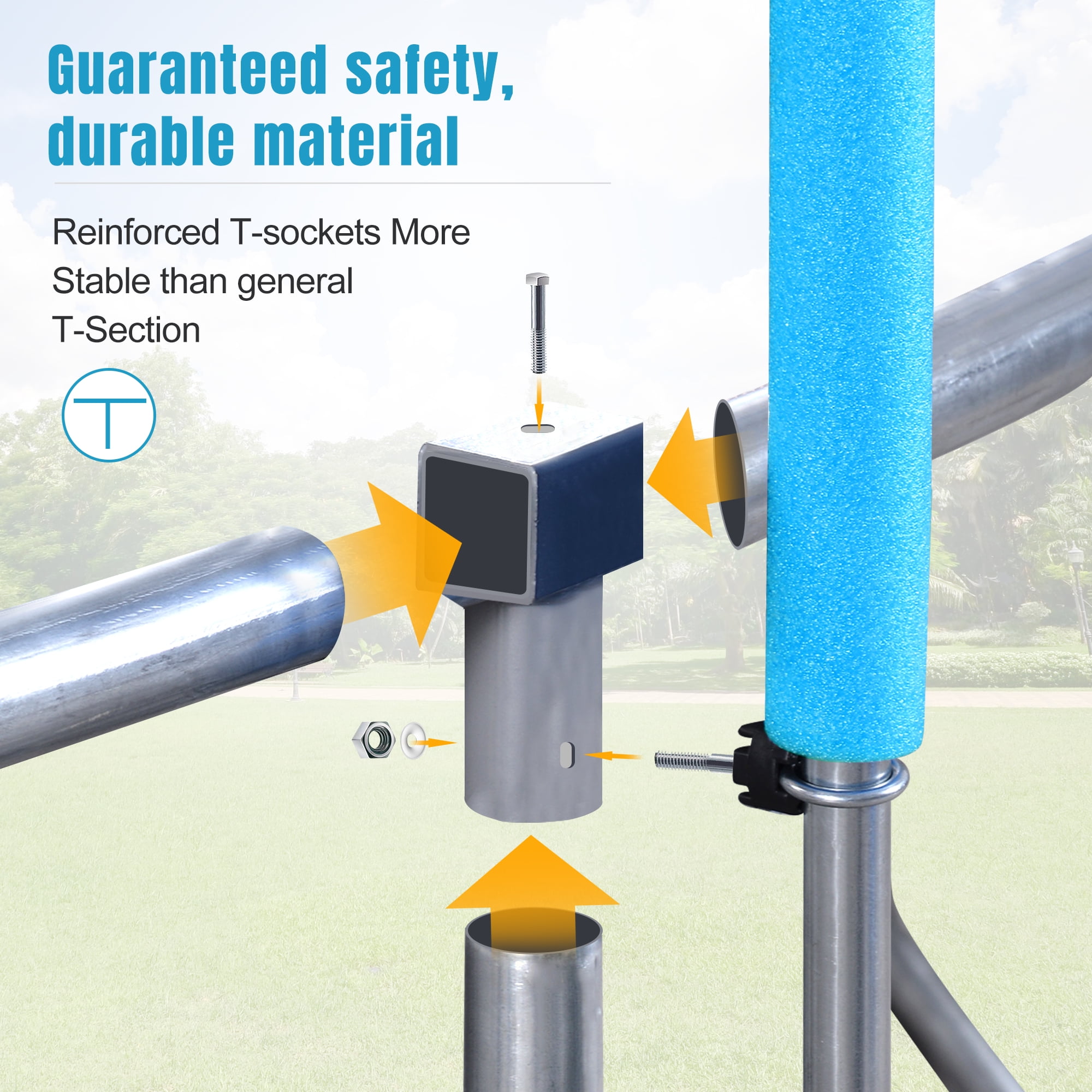 Euroco are committed to upgrading and updating trampoline products, using high-quality materials that are safer and more reliable, and will leave your child with interesting childhood memories! 【Active&Interesting】Bring a brand new way of entertaining to your energetic and tireless children. Let safe jumping exercise improve kids’ coordination, balance, and cardiovascular health. Our trampoline is equipped with a seamless fully enclosed safety net, which is an excellent choice for your exclusive amusement park in your backyard. 【Safety First】When it comes to children, parents always pay their most attention to confirm the safety issues. This trampoline consists of 80 sturdy and flexible springs, combined with a high-elastic, tough jumping mat, which can ensure the stability of each bounce. We use a redundant spring configuration to ensure a soft impact and avoid excessive tension on the feet and joints, so as not to make the child feel uncomfortable. 【Excellent Structure and Materials】The mainframe of the trampoline is supported by high-quality galvanized steel, 4 sets of sturdy leg tubes, and 8 sets of high-quality protection poles to provide maximum bearing capacity and protection, which can fully hold the unlimited vitality of children. The top rails are fixed with specially designed and extra reinforced T-joints to provide excellent stability, and the upgraded W-shaped leg assumes the sturdy base function. 【Careful Care】We this trampoline is equipped with a full-size safety cover pad and is fixed by high-quality elastic bands to protect your children from any potential injuries while playing. The sturdy two-step ladder provides straight navigation on and off the trampoline. The round design of the overall edge aimed to fully protect children from scratches and squeezing. 【Easy Setup】Easy installation with step-by-step instructions. This set comes in 2 boxes and packages may arrive at different times. Our 14FT trampoline assembled dimensions: 14′ x 8.98′ (Feet).