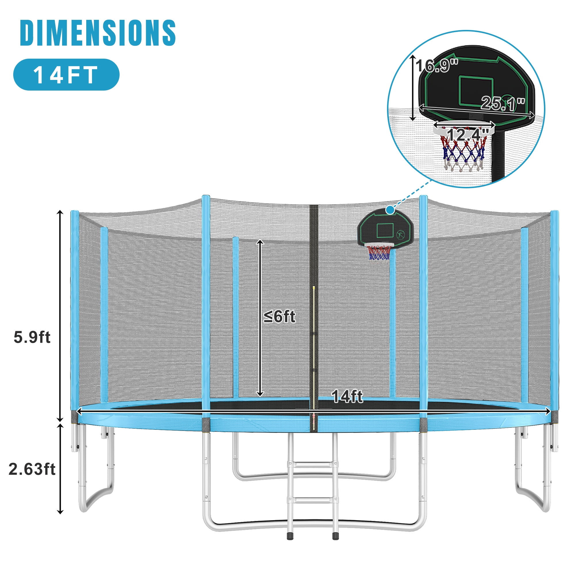 EUROCO 14FT Trampoline with Enclosure Net for Kids and Adults, Recreational Trampolines with Ladder & Baketball