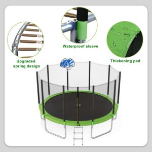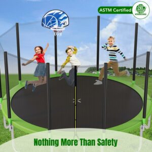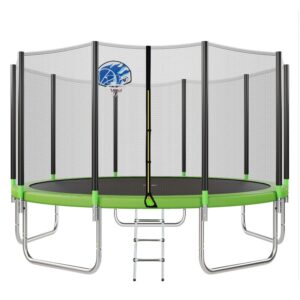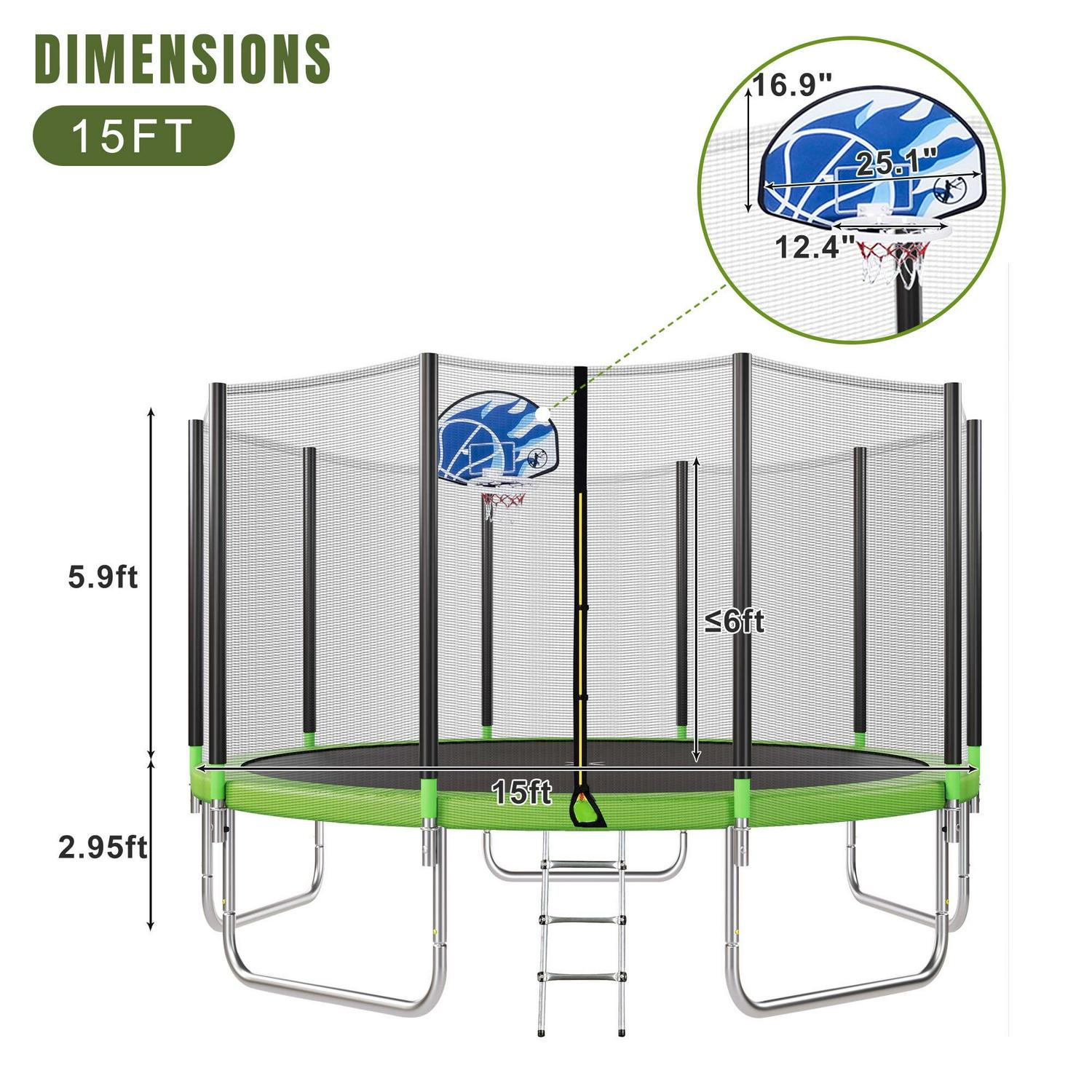 Euroco 15FT Trampoline with Basketball Hoop and Safety Net for Adults and 7-8 Kids, 1500LBS Outdoor High Duty Safety Trampoline, Green