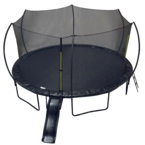Safeseal System This cfeature a 360-degree safety net that is securely attached to the jumping mat all the way around, reducing the risk of an arm or leg falling through. A full enclosure with a zipper door surely lends you peace in mind. The rust-resistant steel 2-step ladder helps you get onto your trampoline quickly and safely. This trampoline with a plastic slide, more than a function for children to play, fence is a double-door design, up and down more convenient More than that, we have Innovated our trampolines with innovative curved poles designed to protect your children from accidents or injury.