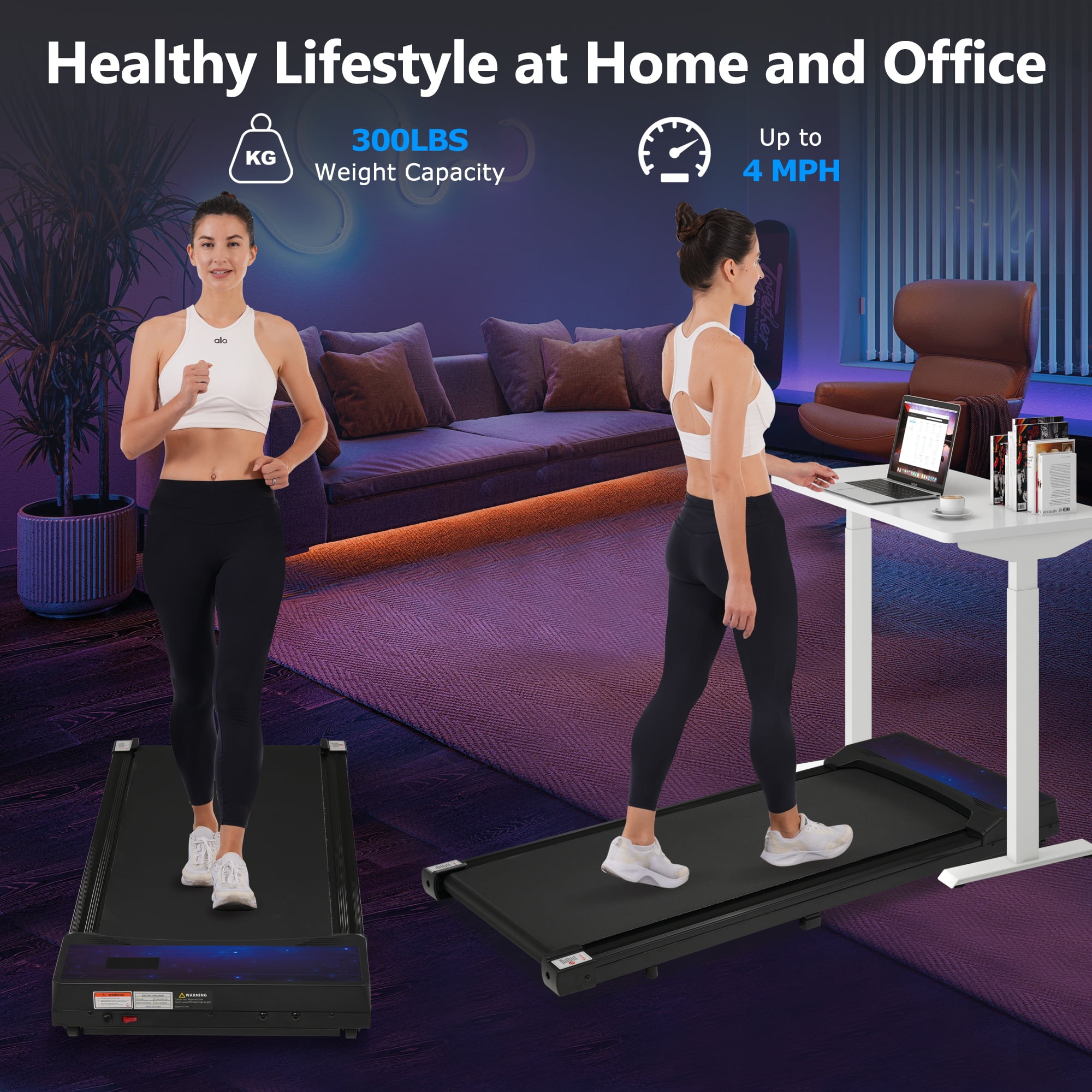 Euroco are committed to upgrading and updating treadmill products, using high-quality materials that are durable and more reliable, and will makes exercise easy and fun! This walking pad features an optimized 2.5HP motor that offers reliability, high responsiveness and quality performance for a smooth run. Whether you want to walk, jog or run, this machine can go all the way from 0.5 to 4 MPH. 【0.6-4MPH 】The walking treadmill with a powerful 2.5 HP motor provides a large carrying capacity of up to 300 pounds.This under desk treadmill provides a speed of 0.6 – 4MPH, which is adequate for most trainees. The right home treadmill can help you integrate fitness into your daily life, and enjoy exercise in the comfort of your home regardless of the weather. 【NO INSTALLATION 】No need to install, just take this walking pad out and use it. The dimension of the electric treadmill is 44.88″*19.3″*3.93″. With transport wheels, you can easily move and store it under a sofa, bed, or behind a door, which greatly frees up some floor space. 【FITNESS TRACKING DISPLAY 】Our portable Treadmill is designed with a LED display to show speed, distance, time, and calories burned, allowing you to visualize your exercise and maintain motivation. You can control the speed or stop the treadmill by pressing the remote control. 【PROTECT YOUR KNEES】5 layer anti-slip belt of this desk treadmill is designed to absorb the force of your step, to protect your joints and ligaments from damage. 【NO NEED TO PAIR REMOTE CONTROL REMOTE】The remote control comes with two AAA batteries. The remote control does not need to be paired. Just install the batteries and you can use it.