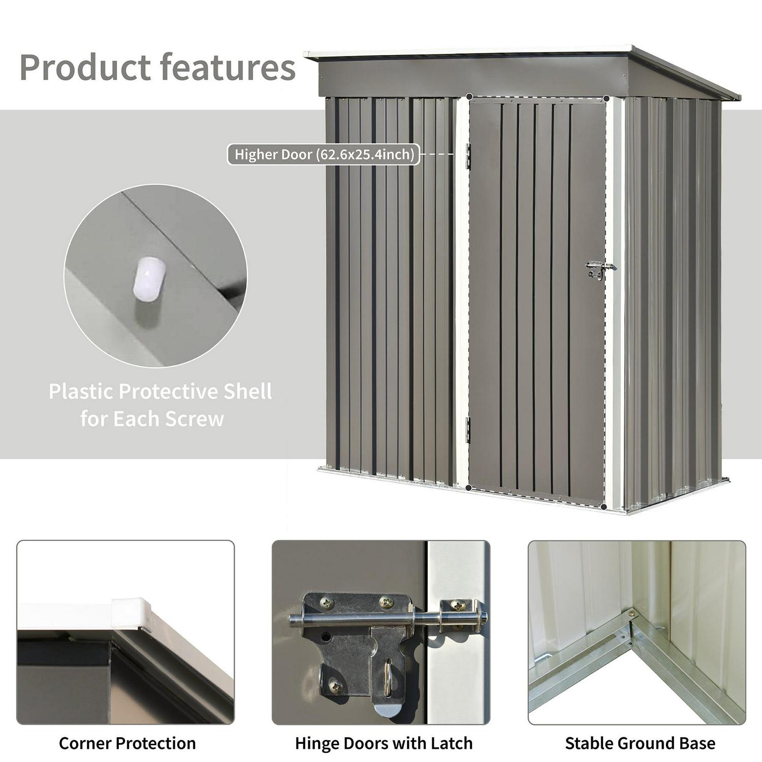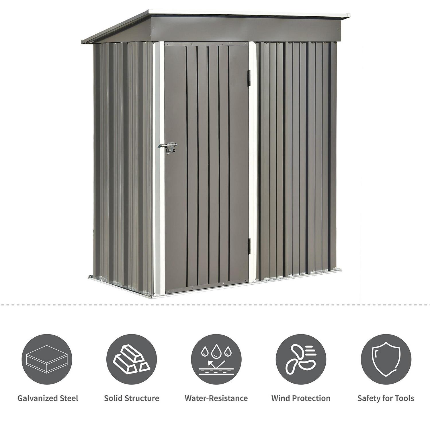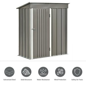 Euroco 5′ x 3′ FT Outdoor Storage Shed, Metal Garden Tool Shed with Lockable Door, Outside Sheds and Storage Galvanized Steel, Gray