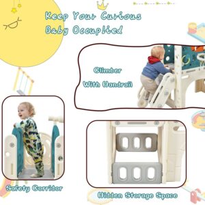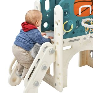 EUROCO 7-in-1Toddler Slide, Indoor Slide Set Playground for Kids,Outdoor Slide Toddlers Climber and Slide Set with Basketball Hoop and Storage Space, 78.7 L Slide for Toddlers Age 12 Month +,Blue