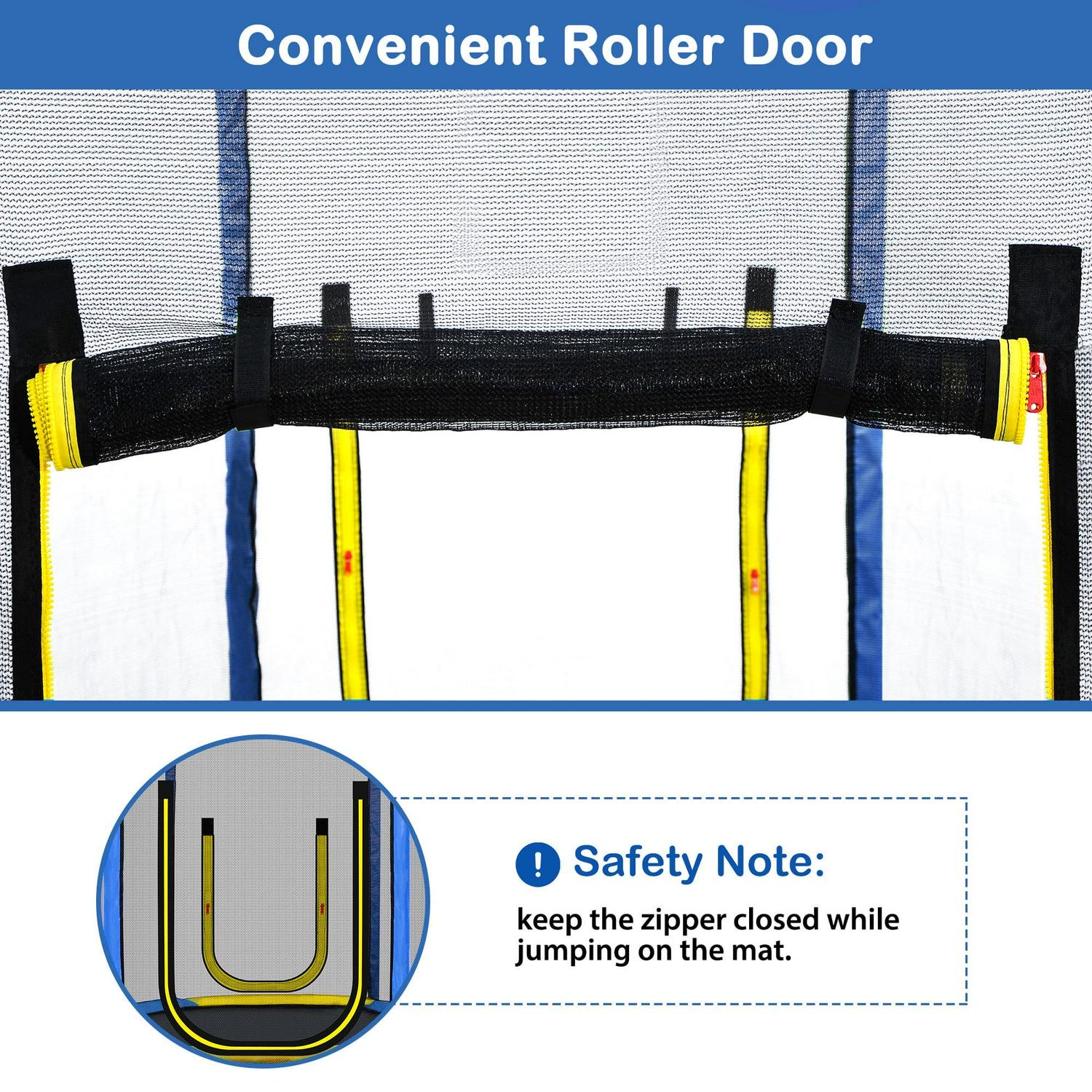Safety First Everything about this trampoline configuration is not only about the fun of playing, but more importantly, it is based on safety considerations. The U-shaped steel frame provides a solid base structure, while the safety pad and high zippered enclosure provide comprehensive protection. The molded slide is smooth enough, and a soft pad for free is used to catch children who slide down happily.