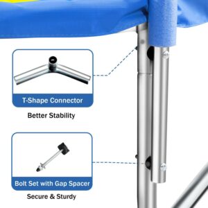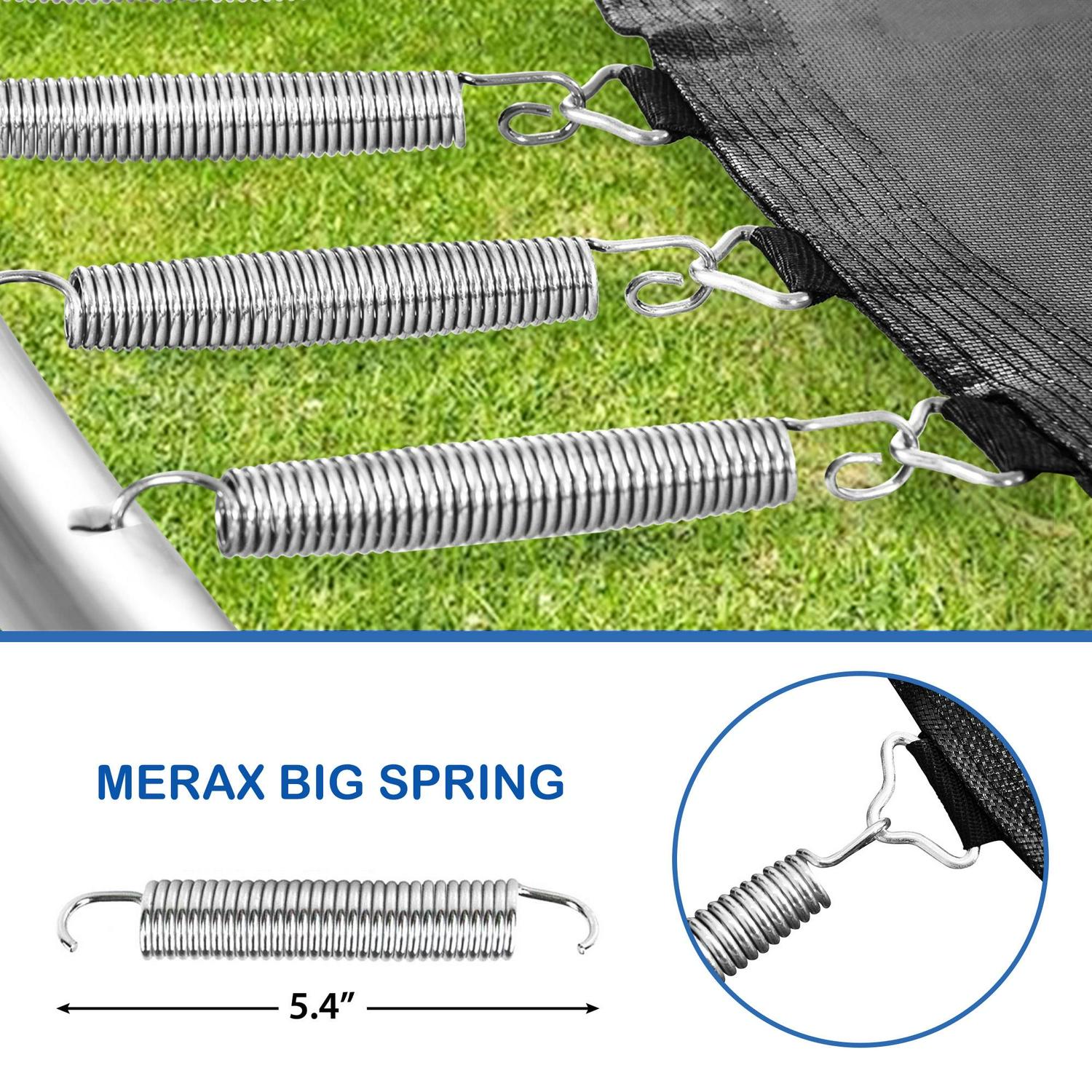 Active Anytime It is important for children to have a place to play at any time. This trampoline is designed to withstand the test of time and weather. Its entire circle of the safety net is supported by 100% high-strength polyester fiber. The addition of active UV protectors can make it better resist damage from the sun. The jumping mat tightly woven with high-elastic materials and 36 premium springs can let children jump freely and completely release their nature. It can bear up to 220 pounds of user weight.