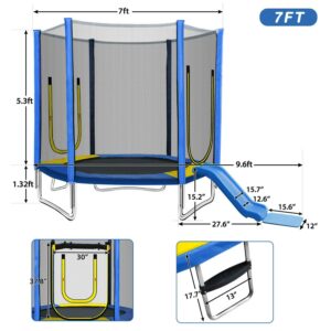 EUROCO 800LBS 7FT Kids Trampoline with Safety Enclosure Net, Indoor Outdoor Trampoline with Slide,Ladder,Spring Pad,All-Weather Trampolines (Age3-12) for 3-4 Kids, Easy Assembly Round Trampoline,Blue