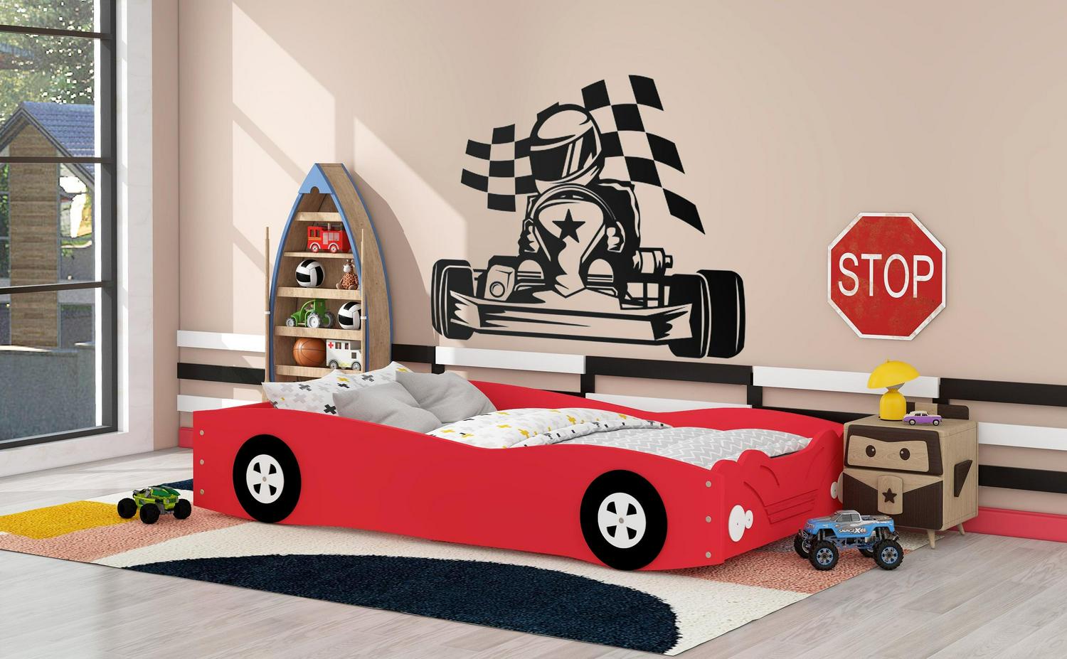 – [Solid Construction]: Constructed from solid pine wood, this car bed will stand the test of time and last for years. High-quality MDF and the design of the bed will be stable, without any wobbling when sleeping on it.