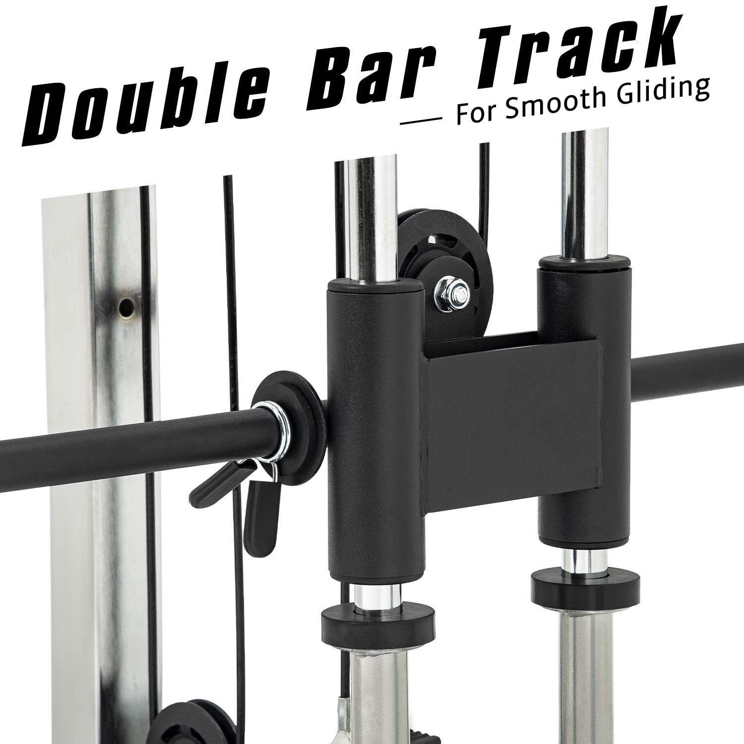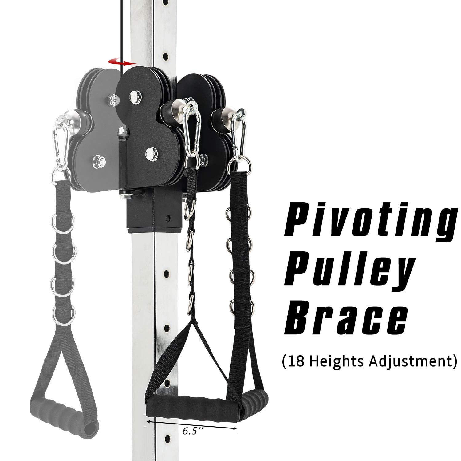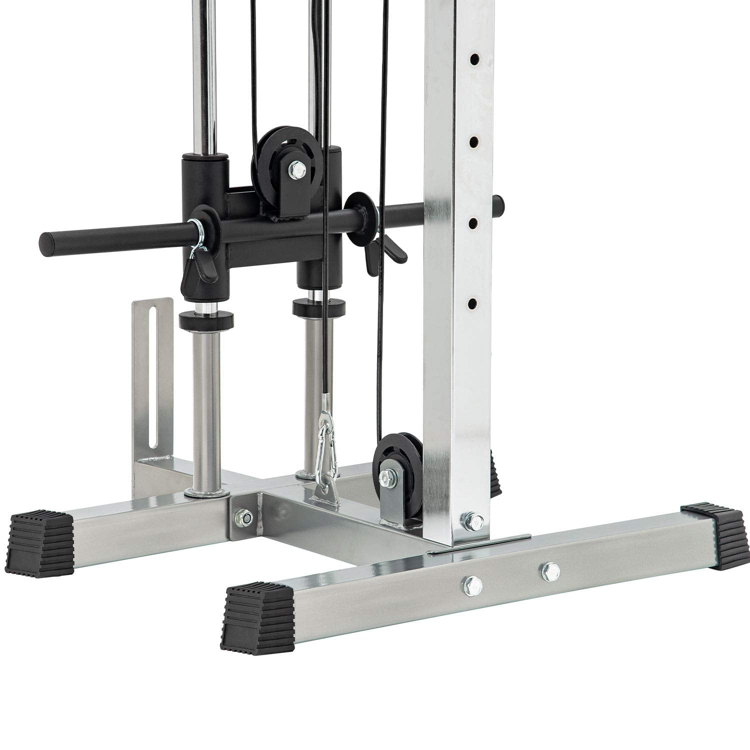 Heavy Duty Cable Machine: The Functional Cable Machine is made of high quality steel and is a sturdy and durable piece of equipment in your home gym! It has a rubber base cover wrapped around each foot to provide further safety and protection for your gym floor! The rubber base cover that wraps around each foot provides further safety, stability and protection for your gym floor. You also have the option to mount this cable crossover on the floor for further stability (hardware included). Versatile Trainer: A full-featured cable machine for your home gym! This machine has a drop bar, adjustable rollers to fit your height, and locks you into a position suitable for high pulley work. The roller will prevent your body from being lifted by the resistance on the bar. Common exercises include cable crossovers for chest workouts, in addition to cable curls, upright rows or low rows, and pull-ups or pull-ups for total body workouts! Work Your Arms and Back: Weight on the plates and use high pull-downs to work your upper body and back muscles, such as the latissimus dorsi. High and low pulley stations are great for safely and effectively working biceps, forearms, latissimus dorsi, shoulders, trapezius and triceps. Pull-down Exercise Machine Dimensions: The machine has an overall height of 80 inches, a length of 25.5 inches and a width of 24.5 inches. Weighing 59.5 lbs. The sturdy steel frame is designed to withstand a lifetime of intense workouts, and the smooth powder-coated paint will stay fresh for years to come.