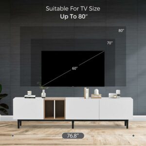 EUROCO Mid-Century Modern TV Stand Up to 80 Contemporary Rectangle ,Unique Style TV Console Table with 3 Doors and Large Storage Cabinet for Living Room Bedroom