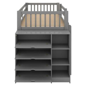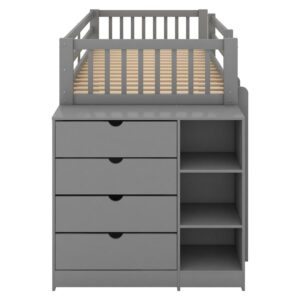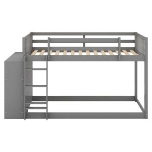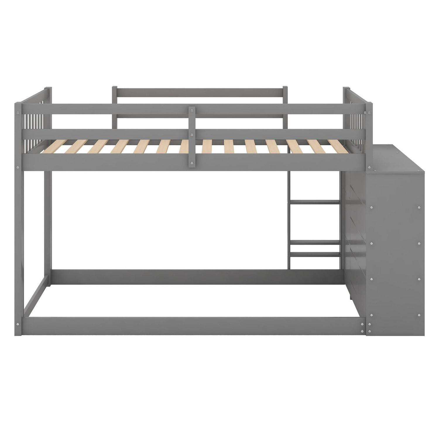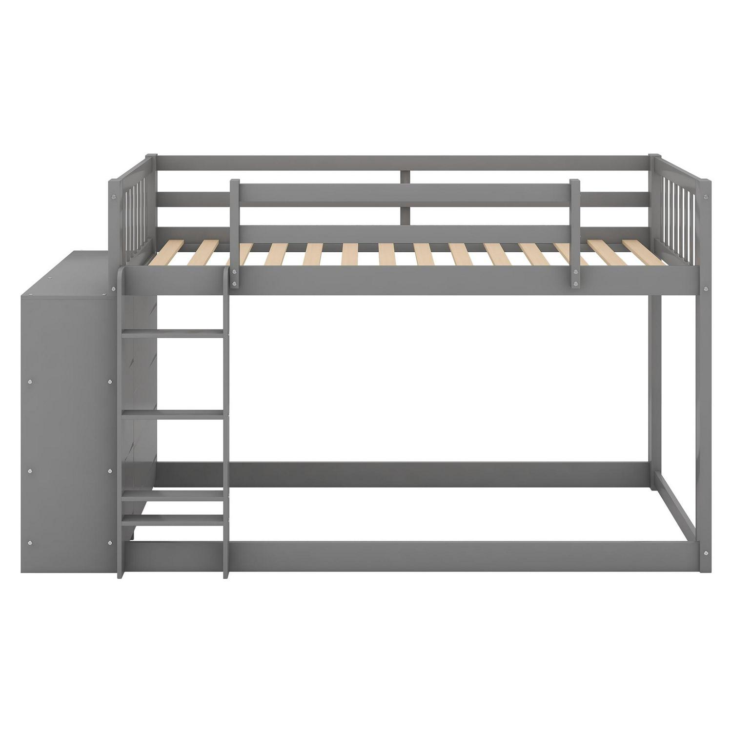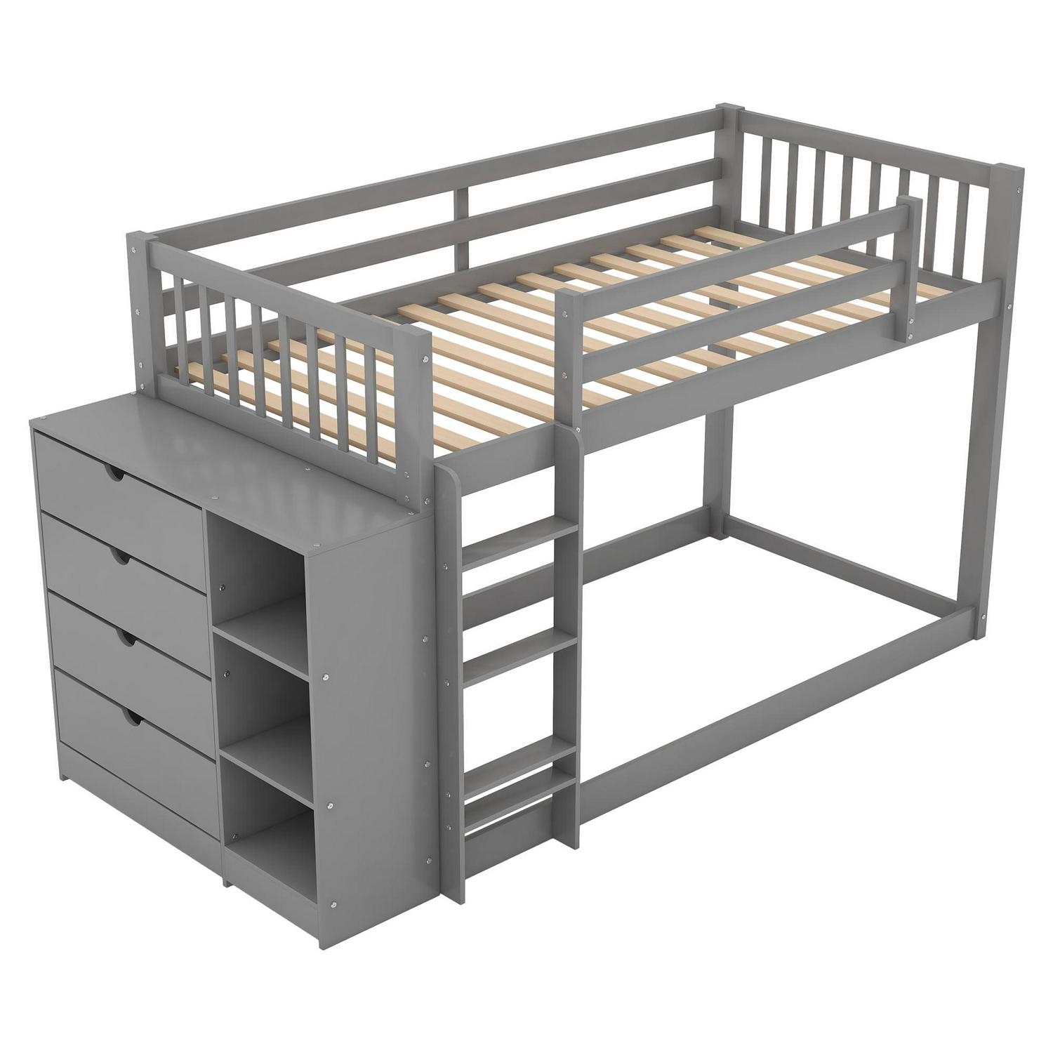 Euroco Twin over Twin Bunk Bed with Attached Cabinet and Storage Shelves for Kids Room, Gray