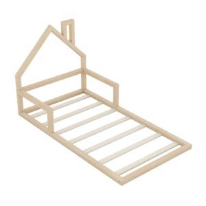 Featuring a house like roof and chimney, this bed doubles as a semi-enclosed play place perfect for kids to study, watch TV or explore their imaginations. With guardrail and a sturdy pine frame, this bed offers a safe space for your kids to get a good night s sleep. A choice of two colors, suitable for different decoration styles. If you are choosing a simple and elegant house bed, this will be the best choice. Low profile design will be easy and safe for you little one to enter.