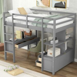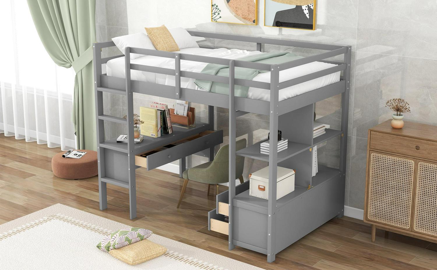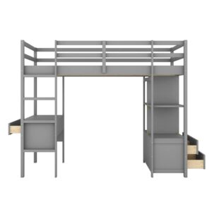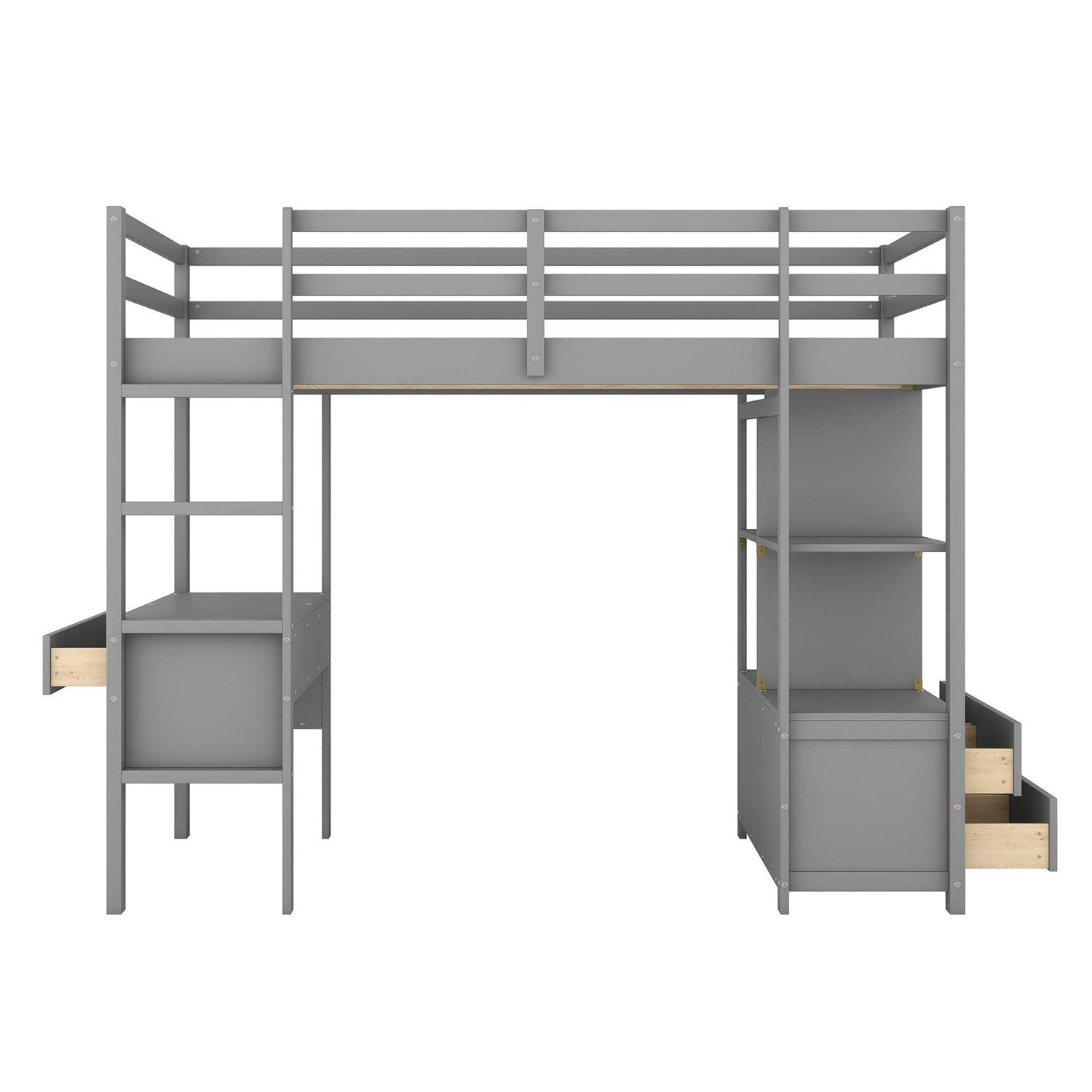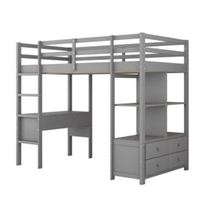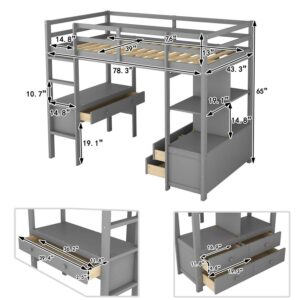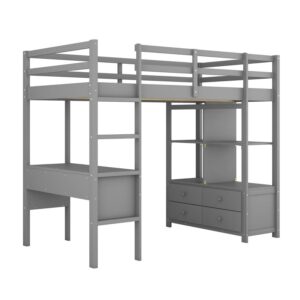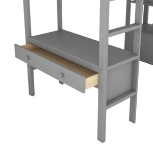 Euroco Twin Size Wood Loft Bed with Desk, Drawers and Shelf for Kids Room, Gray