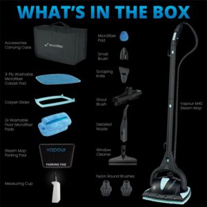 – All in One Steam Cleaner – As an upright floor cleaner, it cleans all types of sealed hard floors leaving them quick to dry and streak-free. As a portable steam cleaner, it has multipurpose uses and comes with a full range of accessories to clean and sanitize any sealed surface in the home. 2 extension tubes, detail brush, triangle brush, grout brush, round brushes, scrapper, carpet slider and microfiber pad, microfiber for triangle brush and 2 large microfiber pads for steam mopping.