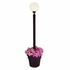 Patio Living Concepts Co. strives to provide the finest quality leisure and lighting products at globally competitive prices through innovative designs, excellent worldwide sourcing and quality assurance engineering. PLC’s management has over 38 years of experience in product design and engineering in the lighting industry. We incorporate aesthetics, function, and quality starting from the initial design phase. Our design and engineering team balance these parameters with requirements for reliability, safety and durability. PLC Co. excels in creative product design: The PLC design team has been awarded numerous patents as a result of these innovations. Features black texture powder coated aluminum construction with a cast iron colored resin planter base. Four 8 in. durable white acrylic lantern globes two level dimming switch and 9 ft. weatherproof cord and plug. 4-60 watt bulb maximum or comparable