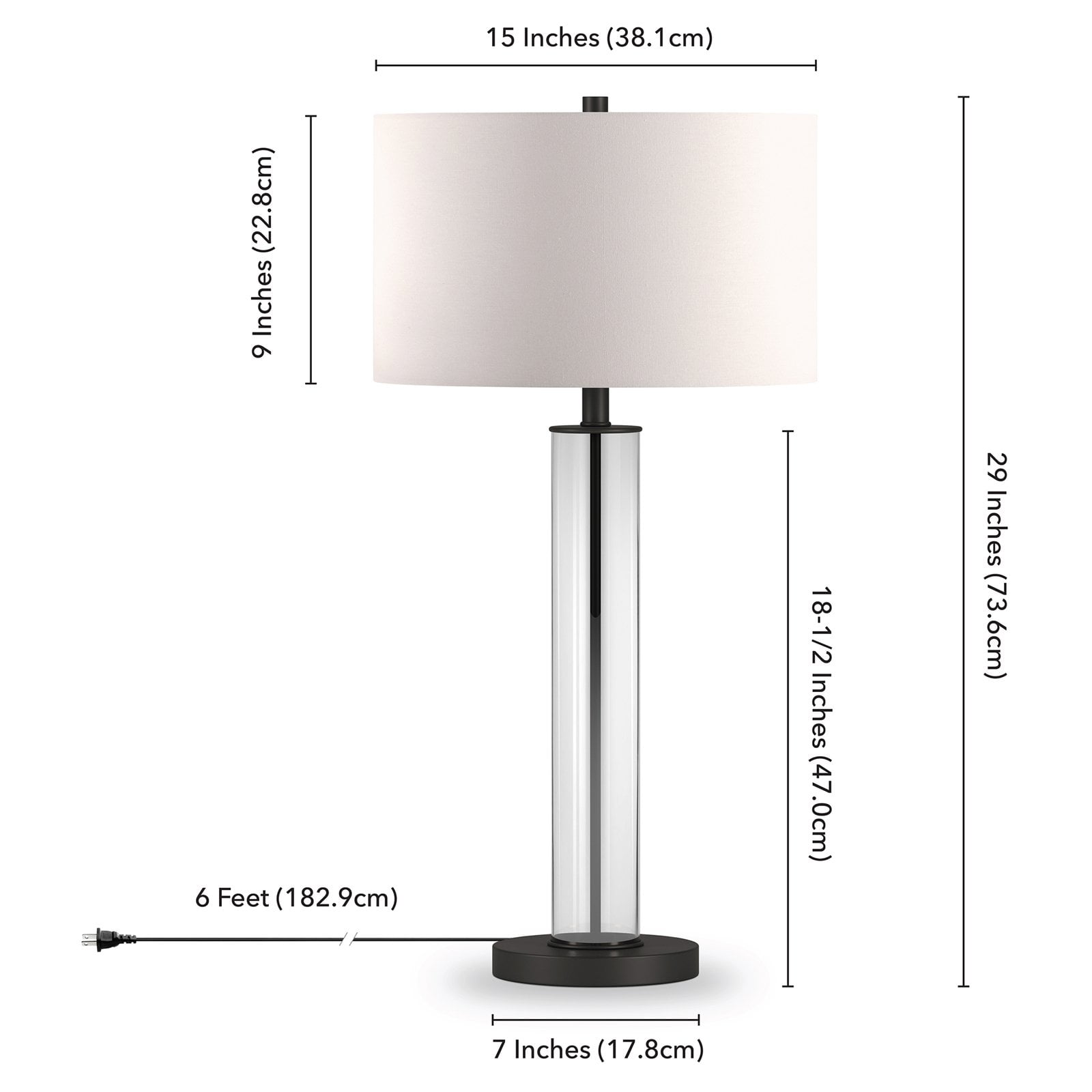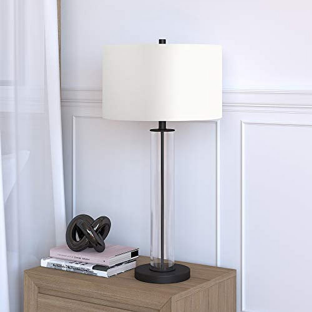 Compatible with smart light bulbs such as Philips Hue, LIFX, IOTTY, TP-Link, Texsens, Flux, Samsung SmartThings, WiZ, and C by GE. Bulb is not included. Uses an E26 base bulb with a max wattage of 60 watts. E26 is considered the standard, basic light bulb. And the lamp is compatible with energy efficient LED bulbs effectively putting out much more light per watt. Ideal use for bedroom lamp, nightstand lamp, kid’s room lamp, living room lamp, dining room lamp, reading lamp, living room lamp, office lamp, task lamp, table lamp, dorm room lamp, buffet table lamp, side table lamp, etc. Premium materials have been used making this lamp: linen in the shade, steel and glass in the frame and base, UL certified wiring components. And the finishes are hand done: the brass finish is a rich brushed brass finish, the blackened bronze finish is a deep dark brown that is nearly black to the eye, and the nickel is a brushed nickel giving the lamp a silver sheen. Features versatile design, chic design inspired by mid-century modern designers, it can easily transform into a contemporary lamp, clean line lamp, mid-century modern lamp, modern design lamp, urban modern lamp, transitional lamp, modern farmhouse lamp, industrial lamp, minimalist lamp, Scandinavian lamp, traditional lamp, Hollywood Glam Lamp, Coastal lamp, Hollywood Regency lamp, eclectic lamp, modern country lamp, Art Deco lamp, Asian Zen lamp, Feng Shui lamp, chic lamp. Handcrafted in an blackened bronze finish with a glass drum body, this lamp adds refinement to any space. The shade is in a crisp chiffon white color and is made of 100% linen with polystyrene lining for durability. Rated for one 60W incandescent bulb; 9W LED bulb, 13W fluorescent (CFL) bulb, or 9W self-ballasted LED bulb. E26-base bulb. Includes a 6 ft. cord. Clean with a soft, dry cloth; no harsh chemicals or abrasive cleaning materials.