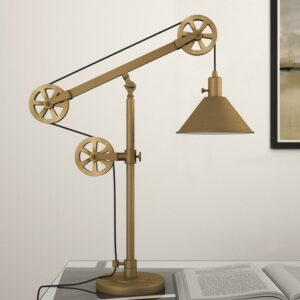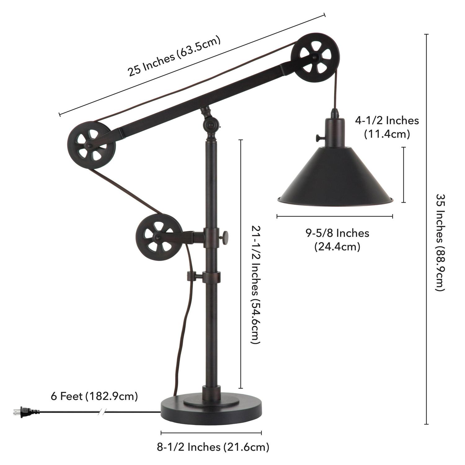 Evelyn&Zoe 29 Traditional Metal Table Lamp with Pulley System and Cone Metal Shade