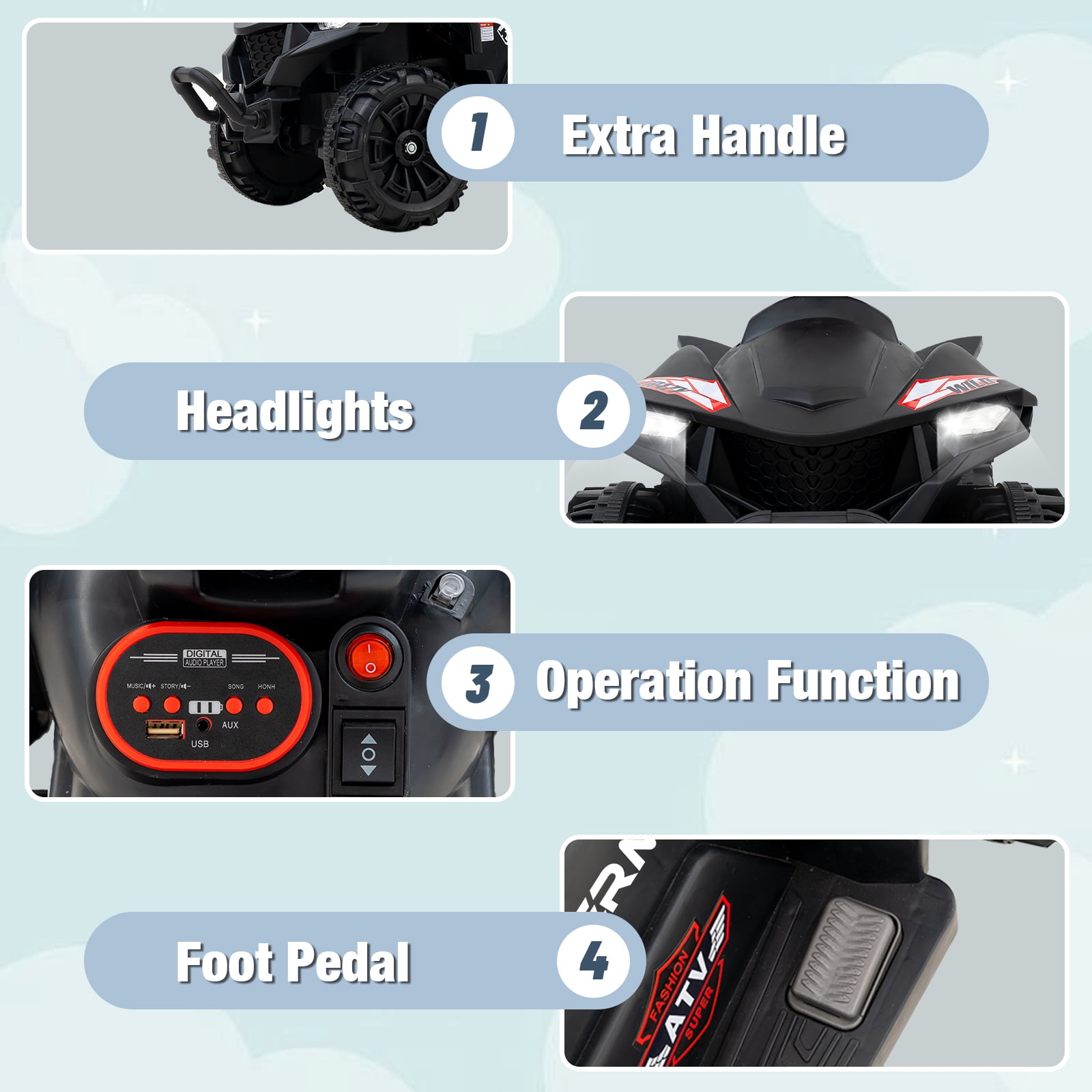 HOVERMAX 12V Kids Ride on ATV, 4 Wheeler Quad Toy Vehicle for Kids Aged 3+